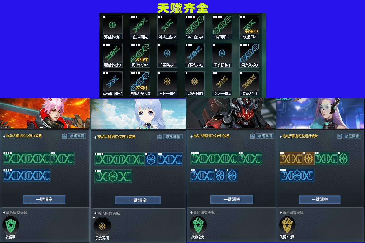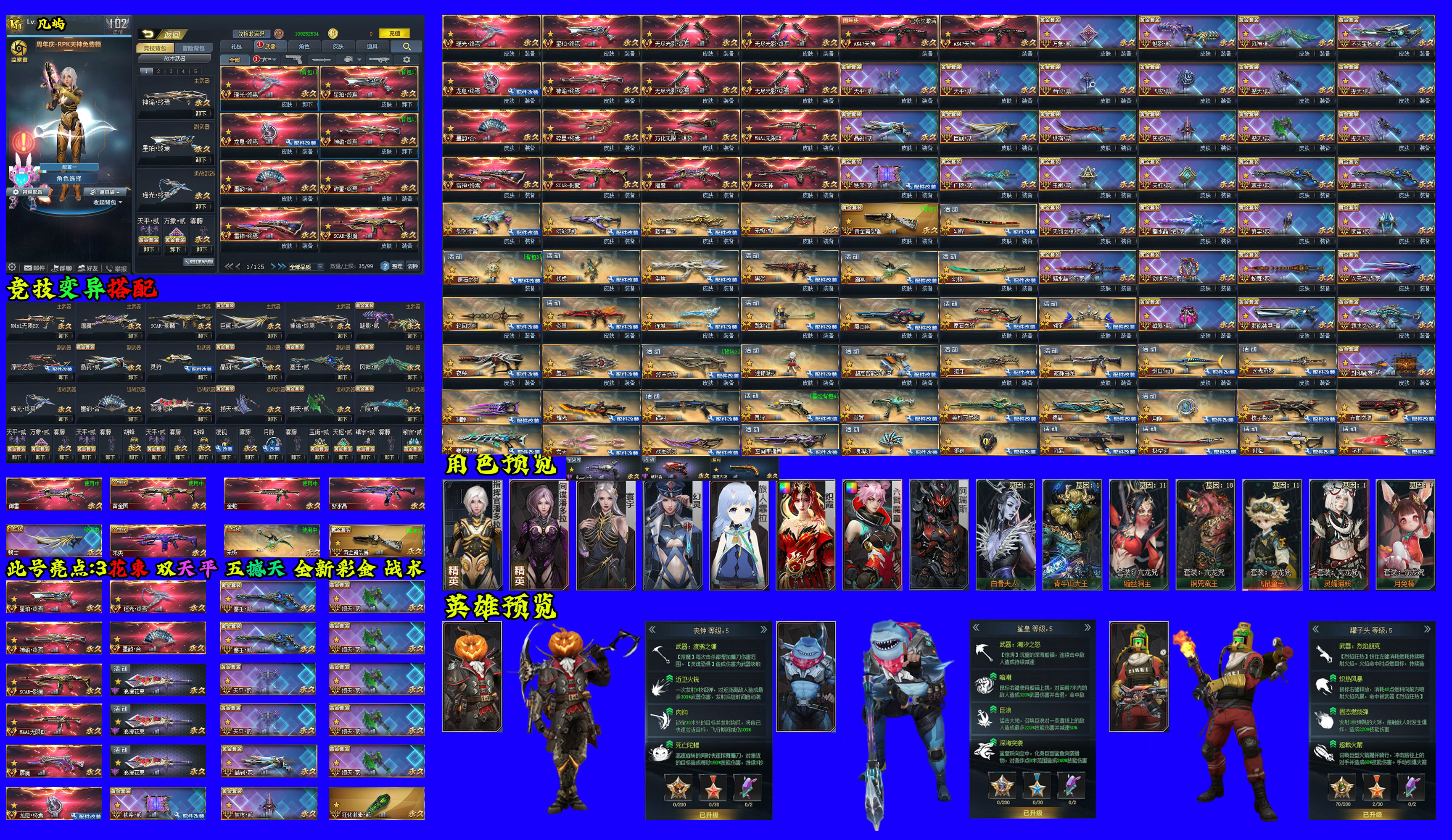 普通人物:★赤霞★寰宇幻灵★阿瑞斯★潘多拉★龙女◆小乔◆迭影◆爱尔雅◆六臂魔童◆青龙◆腾龙◆伊利亚◆白虎◆甜蜜救护员◆轮滑少女◆龙鹰◆熙碧儿◆哈苏女王◆指挥官潘多拉◆间谍潘多拉◆