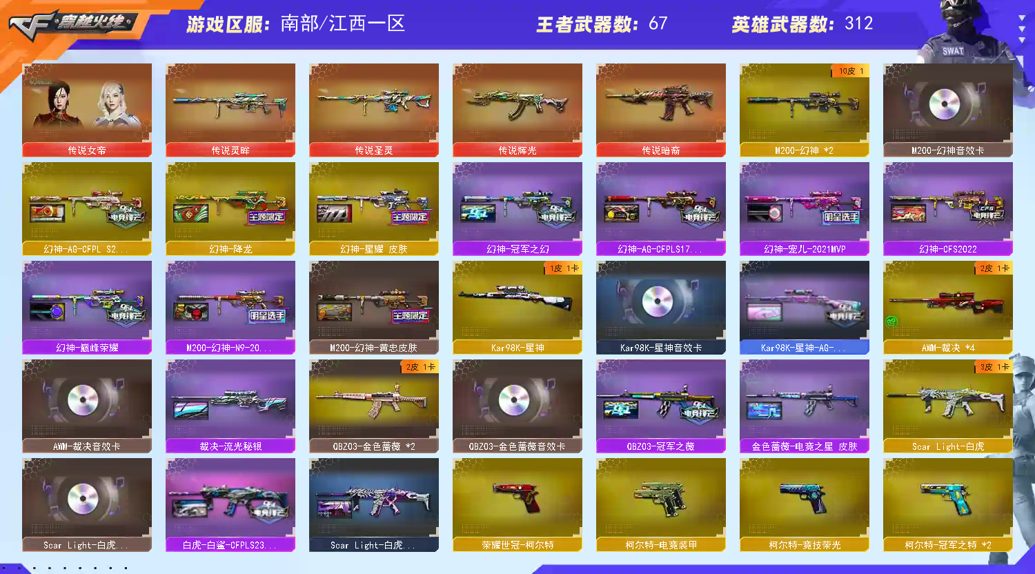 🔥副武器:COP堕天神x2+COP幻灵X2+冠军之特X2+COP雷霆王者X2+usp雷暴+神功天巧+电竞特+竞技特+荣耀世冠特+夜魔破空🔥