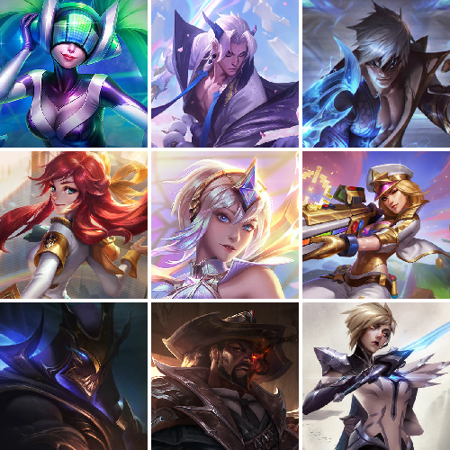 【重要皮肤】DRX亚托克斯至臻 至高天奎桑提至臻 灵魂莲华易至臻 海珀利安小队X09星环灵风迦娜至臻 幻灵战斗猫金克丝至臻 太空律动璐璐至臻 奥术师佐伊至臻 未来战士卢锡安至臻 真实伤害赛娜至臻 灵能特工伊泽瑞尔至臻 源计划逆流塞拉斯至臻 黑夜使者凯隐至臻 征服者贾克斯至臻 KDA二代卡莎至臻 KDA伊芙琳至臻 战斗学院拉克丝至臻 电玩女神凯特琳至臻 魅惑女巫厄运小姐至臻 星之守护者妮蔻至臻 源计划正义艾瑞莉娅至臻 绒毛菲兹至臻 腥红之月亚托克斯至臻 腥红之月亚托克斯2022至臻 未来战士锤石至臻 未来战士锤石2022至臻 海克斯科技安妮 海克斯科技雷克顿 海克斯科技斯维因 海克斯科技吉格斯 海克斯科技玛尔扎哈 海克斯科技阿木木 海克斯科技魔腾 黎明使者卡尔玛 零之枪骑赫卡里姆 摄魂使者薇恩 胜利之王泰达米尔 海珀利安小队Y03权天使卡蜜尔 银龙裁决泰隆 天龙之子斯莫德 剪纸仙灵艾瑞莉娅 替父从军花木兰 神龙烈焰金克丝 春晖神女拉克丝 北辰之威内瑟斯 定海神珍孙悟空 虎痴之拳蔚 张辽文远 司马懿仲达 金猪烈焰瑟庄妮 纳财大帝塔姆 神龙之翼库奇 王国机神青龙德莱文 王国机神苍狼瑟提 胜利女神瑟庄妮 胜利机器人布里茨 胜利女神奥莉安娜 胜利枪神卢锡安 碎心之拳蔚 觅心游侠卢锡安 觅心猎手薇恩 雪球也能爆炸吉格斯 圣诞老人德莱文 冰雪风暴希维尔 冰雪女神辛德拉 魄罗骑士瑟庄妮 平安夜女神娑娜 海之歌永恩 海之歌泽丽 泳池派对普朗克 泳池派对奥莉安娜 泳池派对塔莉垭 泳池派对厄运小姐 泳池派对菲奥娜 泳池派对格雷福斯 泳池派对李青 御星魔矢艾希 EDG厄斐琉斯 EDG悠米 FPX锤石 iG乐芙兰 iG菲奥娜 SSG嘉文四世 SKTT1扎克 SKTT1阿利斯塔 SSW锤石 SSW雷恩加尔 SSW泰隆 SSW图奇 SSW辛吉德 暗杀星奥莉安娜 暗杀星蒙多 暗杀星慎 Fnatic迦娜 Fnatic库奇 Fnatic嘉文四世 冰雪节格雷福斯 防暴士兵辛吉德 防暴天使凯尔 冠军之刃锐雯2016 冠军之血希瓦娜 鬼影森森茂凯 红桃杰克崔斯特 胡桃夹子萨科 警用试作体K9内瑟斯 密林猎手提莫 圣诞精灵崔丝塔娜 圣诞开心鬼提莫 圣诞狂欢努努和威朗普 圣诞老人古拉加斯 圣诞玩偶波比 无头骑士赫卡里姆 喜庆之树茂凯 邪恶圣诞老人维迦 幸福女神乐芙兰 雪默丁格 雪球也能爆炸吉格斯 野兽猎人德莱文 野兽猎人瑟庄妮 野兽猎人泰达米尔 英勇玩具兵普朗克 征服者韦鲁斯 暗影沃里克 都铎王朝图奇 十五周年纪念希维尔 十周年纪念安妮 源代码乐芙兰 神凰行者瑞羽圣凰艾尼维亚 胜利凤凰艾尼维亚 DJ娑娜 大元素使拉克丝 灵魂守卫乌迪尔 绝息圣堂洛