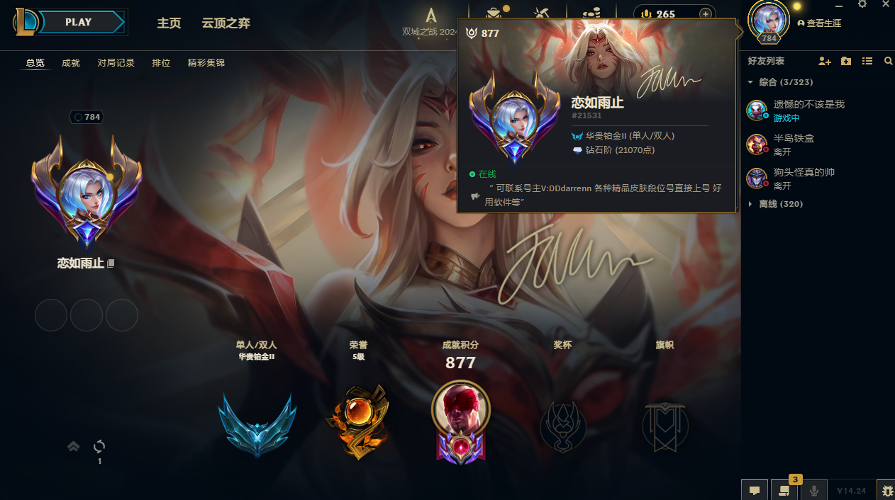 号主薇:DDdarrenn 可直接找号主扫 ~~出现网络异常~~多登入几次即可 ~~喜欢记得收藏~~可排位~~极品号低价出租|超级好的体验丨记得收藏 优惠出租 禁止挂机逃跑 违者一定举报拉黑处理 举报拉黑会禁止租号 谢谢了 千万别挂机逃跑~