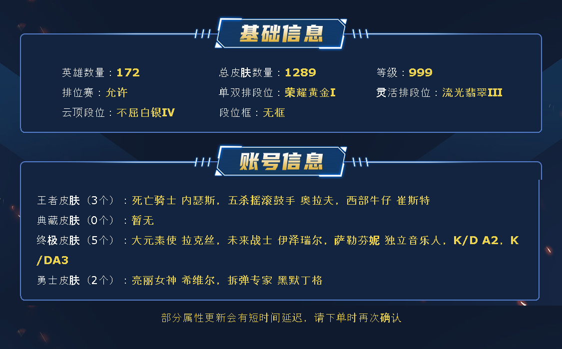~~喜欢记得收藏~~可排位~~999皮全英雄丨679原皮317炫彩丨90神话/至臻/海克斯丨鼠年套丨EDG套丨幻灵女枪丨剪纸刀妹丨泳池女警丨觅心金克斯丨羊年金克斯丨青花瓷伊泽丨神凰行者霞丨幽梦玫瑰蜘蛛丨咖啡甜心格温丨西部天使艾希丨女帝女枪卡特丨电玩女枪人马丨山海绘卷莉莉娅丨玉剑刀妹剑姬剑圣丨KDA狐狸卡莎寡妇丨至高天奎桑提薇古丝丨灵魂莲华狐狸莉莉娅丨神龙尊者李青亚索艾希丨星守狐狸风女发条伊泽~~租之前尽量查一下游戏ID,确保段位是您需要的,避免浪费您的时间~~请勿挂机逃跑故意送人头,谢谢合作,谢谢~~