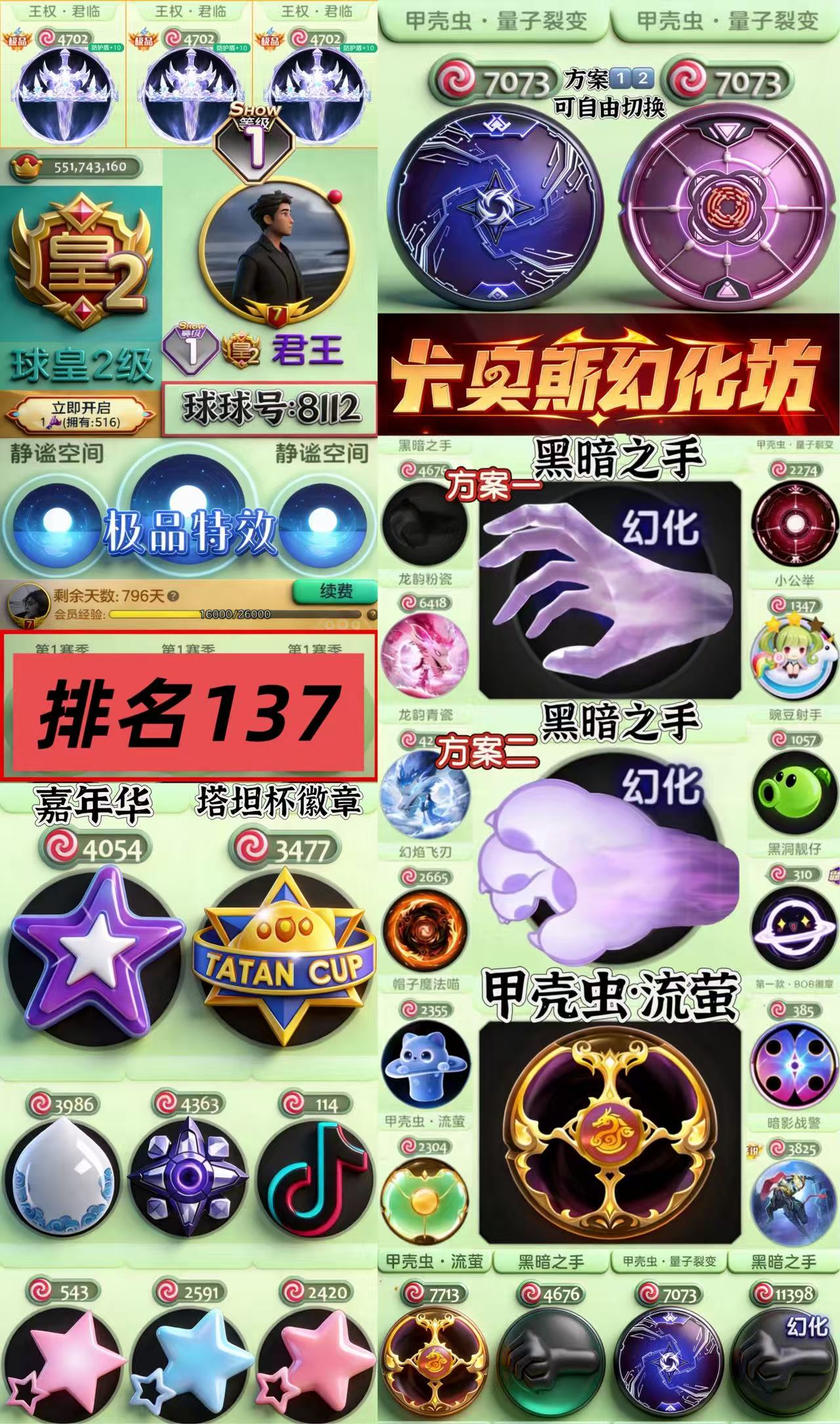 【全平台】 ❤️满赛季137名【君王】一秀皇,静谧空间塔坦杯嘉年华公子王子,黑甲漩涡,黑暗之手人手,量子裂变