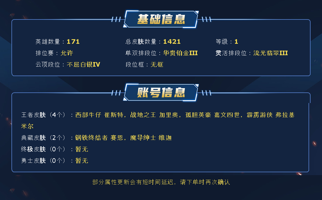 ~~喜欢记得收藏~~可排位~~1218皮全英雄~~租之前尽量查一下游戏ID,确保段位是您需要的,避免浪费您的时间~~请勿挂机逃跑故意送人头,谢谢合作,谢谢~~