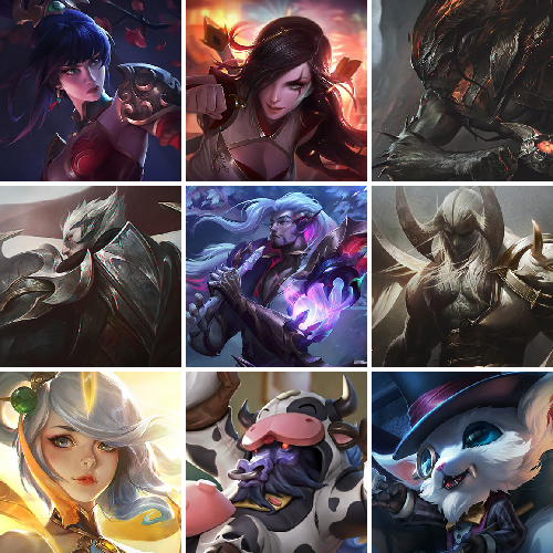 【重要头像】万圣节卡特琳娜 青花瓷拉克丝炫彩 击拳 EDG格雷福斯 此志无双羽饰骑士 至臻青花瓷丽桑卓 至臻星之守护者辛德拉 至臻海之歌萨勒芬妮 至臻青花瓷拉克丝 至臻魔女婕拉 水晶圣骑艾希头 水晶圣骑蕾欧娜头