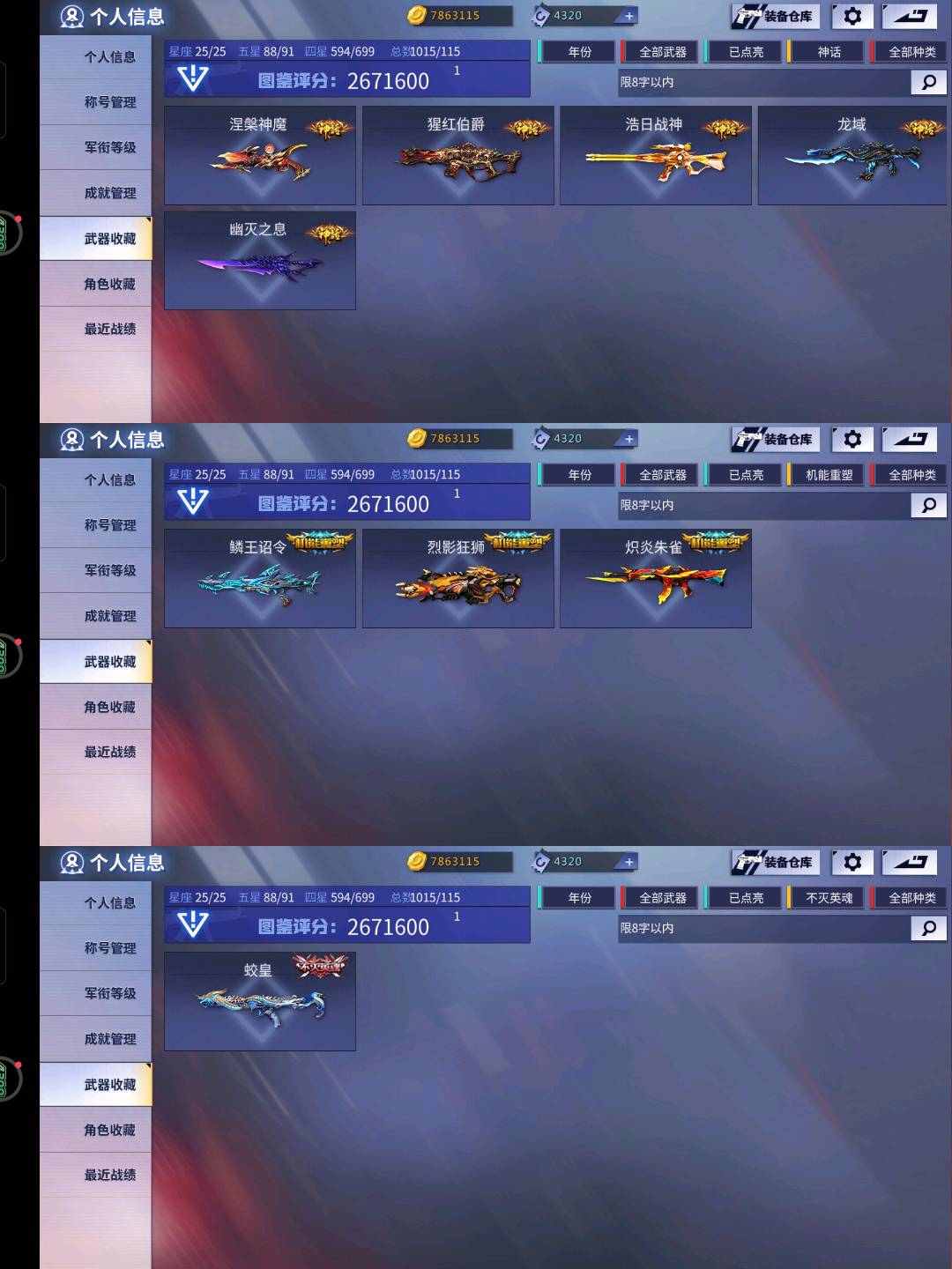 ⭐4399 3区极品号270w武器图鉴分 ⭐