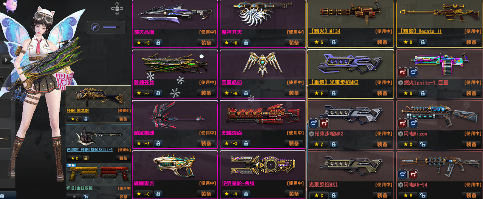 3. 更新:怀旧三件套金红双蝎黑龙炮斧头!特典加特林黯火和特典狙暗影,光束全套123,闪电套野牛和94,生化Z全部赛季都有!赛季有第1,第6到21赛季(重要赛季全有,第1,6,7,9,10,12,14,16,17,18,21等)!满配件满强化,全66配件,完美强化!其他武器看图,已去黑雾!