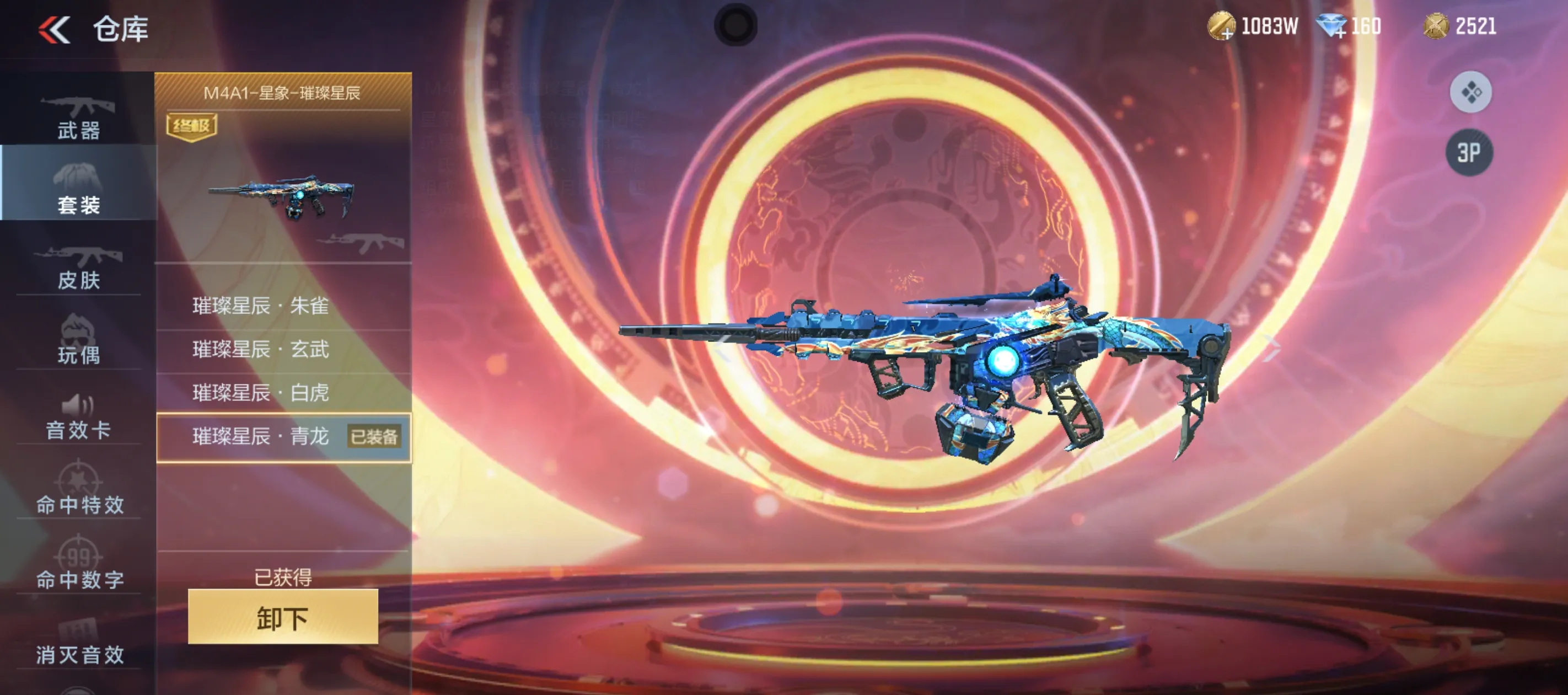 聚变脉冲、雷神cop、雷霆、G3A3-游骑兵、魔礼寿、帝皇铠甲套装、葫芦娃全套、游骑兵全套、七色宝葫、巴雷特—雷神、火麒麟-灵狐、M4A1—黑龙钰—子涵、巴雷特—毁灭—审判者、M4A1—雷神—罗拉、AK47—无影—葵、AWM—天龙—曼陀罗、81式—光明之神、MK47—云舞、MK47—机械纪元、AWM—赛博时代、龙吟惊沧海、SKS—美杜莎、AK47—黑鲨、M4A1—龙血、AK47—英朗、夜袭、星速、星神等等