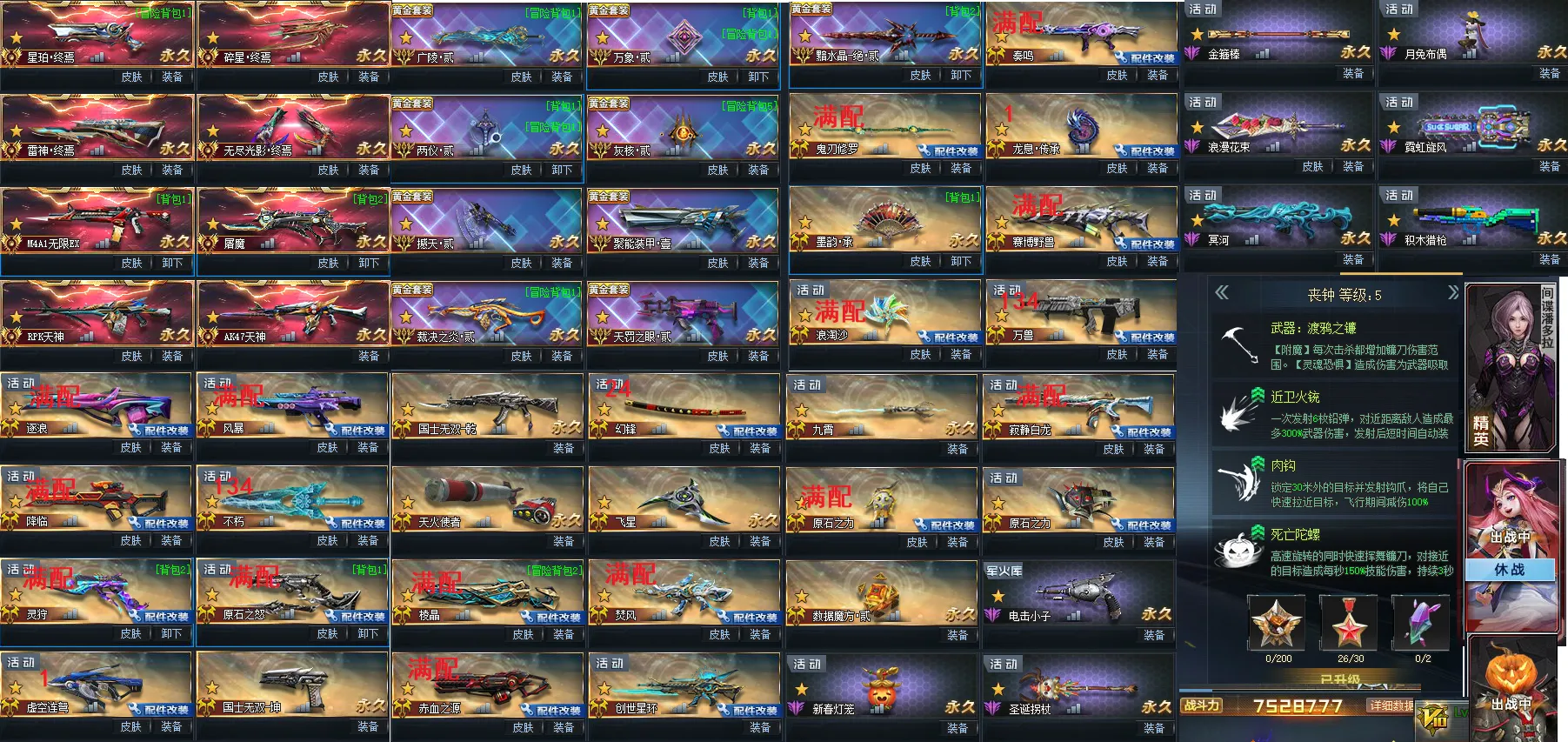 七传说武器:星珀终焉/星魄终焉 碎星终焉,墨韵.承,雷神终焉,无尽光影终焉,无限ex,屠魔,rpk天神。炎凰满配