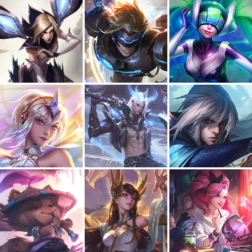 【重要皮肤】黑色玫瑰假面舞会卡特琳娜至臻 玉剑传说琴仙子至臻 DRX亚托克斯至臻 墨之影武者亚索至臻 花仙使者卡特琳娜至臻 青花瓷丽桑卓至臻 星之守护者辛德拉至臻 神凰行者烈羽焰凰霞至臻 战斗学院蕾欧娜至臻 魔女婕拉至臻 真实伤害亚索至臻 灵能特工伊泽瑞尔至臻 源计划逆流塞拉斯至臻 神龙尊者炎龙瑟提至臻 黑夜使者凯隐至臻 神龙尊者均衡之龙沃利贝尔至臻 绒毛菲兹至臻 玉剑传说武剑仙至臻 灰烬守护者慎 海克斯科技瑟庄妮 海克斯科技雷克顿 海克斯科技斯维因 海克斯科技吉格斯 海克斯科技魔腾 水晶圣骑蕾欧娜 星之守护者塔莉垭 零之枪骑赫卡里姆 胜利剑圣易 胜利女神希维尔 创星之灵璐璐 奥斯曼大帝普朗克 荣誉使者玛尔扎哈 电玩女神厄运小姐 星之守护者伊泽瑞尔 玉剑传说无影 玉剑传说舞剑仙 剪纸仙灵嘉文四世 银龙裁决泰隆 剪纸仙灵希维尔 剪纸仙灵盖伦 猛虎下山赵信 神龙烈焰金克丝 碧玉之牙卡西奥佩娅 春晖神女拉克丝 你看见过我的熊猫吗安妮 美猴王孙悟空 广寒仙子嫦娥 司马懿仲达 醒狮克格莫 神龙之翼库奇 王国机神青龙德莱文 王国机神苍狼瑟提 王国机神白虎贾克斯 福牛守护者厄斐琉斯 水晶玫瑰阿克尚 幽梦玫瑰伊莉丝 甜心之翎洛 觅心猎手薇恩 幽梦玫瑰辛德拉 水晶玫瑰斯维因 北极星神黛安娜 北极星圣贤基兰 冬季仙境奥莉安娜 雪球也能爆炸吉格斯 圣诞捣蛋鬼金克丝 圣诞老人德莱文 冰雪驯鹿波比 持胡萝卜的雪人易 冰封王子蒙多 冰雪女神辛德拉 魄罗骑士瑟庄妮 夺命美人卡特琳娜 圣诞糖果棒厄运小姐 死亡誓约卡特琳娜 死亡誓约劫 克烈古拉伯爵 小恶魔菲兹 海之歌永恩 海之歌泽丽 泳池派对佐伊 泳池派对辛德拉 泳池派对厄运小姐 泳池派对菲奥娜 泳池派对格雷福斯 泳池派对蕾欧娜 御星魔矢艾希 克格汪 制胜金球拉莫斯 EDG厄斐琉斯 EDG佛耶戈 EDG格雷福斯 EDG悠米 EDG佐伊 DWG崔斯特 DWG凯南 DWG蕾欧娜 FPX墨菲特 iG卡莎 iG艾瑞莉娅 SKTT1艾克 SKTT1奥拉夫 SKTT1卡莉丝塔 SKTT1伊莉丝 SSW锤石 SSW泰隆 SSW图奇 SSW辛吉德 暗杀星奥莉安娜 暗杀星蒙多 暗杀星努努和威朗普 暗杀星慎 Fnatic库奇 Fnatic嘉文四世 冰雪节玛尔扎哈 冰雪节辛吉德 防暴士兵格雷福斯 防暴士兵辛吉德 防暴天使凯尔 钢铁之翼艾尼维亚 冠军典狱长锤石 冠军蔷薇乐芙兰 冠军之矛卡莉丝塔 冠军之血希瓦娜 冠军之隐劫 冠军之志瑞兹 春晖大帝锤石 春晖山神墨菲特 鬼影森森茂凯 鬼影重重魔腾 胡桃夹子萨科 惊悚派对阿木木 蓝色忧郁崔斯特 魅惑女巫悠米 南瓜头费德提克 破空枪骑孙悟空 圣诞精灵崔丝塔娜 圣诞狂欢基兰 圣诞狂欢努努和威朗普 圣诞玩偶波比 圣诞驯鹿克格莫 外星装甲库奇 卧虎藏龙贾克斯 喜庆之树茂凯 邪恶圣诞老人维迦 幸福女神乐芙兰 雪默丁格 雪球也能爆炸吉格斯 野兽猎人德莱文 野兽猎人瑟庄妮 永恒之森乐芙兰 勇者奈德丽 征服者韦鲁斯 暗影沃里克 魅惑女巫波比 魅惑女巫辛德拉 诺斯费拉图弗拉基米尔 阿木木主人不要我了 2021全球总决赛嘉文四世 地底世界崔斯特 都铎王朝图奇 十五周年纪念希维尔 十周年纪念安妮 源代码乐芙兰 神凰行者瑞羽圣凰艾尼维亚 DJ娑娜 大元素使拉克丝 未来战士伊泽瑞尔 KDAALLOUT萨勒芬妮独立音乐人 KDAALLOUT萨勒芬妮明日新星 KDAALLOUT萨勒芬妮超级巨星 绝息圣堂洛