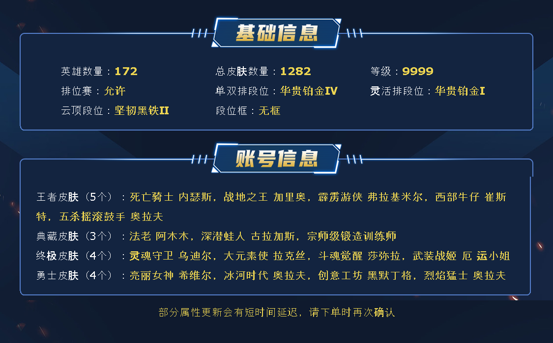 【重要皮肤】殿堂传奇阿狸 狼神英灵斯维因至臻 T1杰斯至臻 人工智能悠米至臻 至高天凯尔至臻 西部魔影伊芙琳至臻 青花瓷千珏至臻 天龙之子伊泽瑞尔至臻 北极星钢影卡蜜尔至臻 魔女阿卡丽至臻 斗魂觉醒派克至臻 DRX亚托克斯至臻 花仙使者卡特琳娜至臻 绝息圣堂厄运小姐至臻 青花瓷丽桑卓至臻 北极星使者沃里克至臻 灵魂莲华易至臻 星之守护者艾克至臻 西部魔影猎天使恶魔泰隆至臻 幻灵战斗猫金克丝至臻 神凰行者烈羽焰凰霞至臻 魅惑女巫莫甘娜至臻 战斗学院蕾欧娜至臻 魔女乐芙兰至臻 奥术师佐伊至臻 真实伤害亚索至臻 灵能特工伊泽瑞尔至臻 源计划逆流塞拉斯至臻 王国机神玄武盖伦至臻 神龙尊者炎龙瑟提至臻 黑夜使者凯隐至臻 KDA一代卡莎至臻 KDA卡莎2022至臻 战斗学院拉克丝至臻 烈焰美人薇恩至臻 烈焰美人薇恩2022至臻 电玩女神凯特琳至臻 源计划正义艾瑞莉娅至臻 绒毛菲兹至臻 玉剑传说武剑仙至臻 黑夜使者李青至臻 殿堂传奇乐芙兰 灰烬骑士莫德凯撒 灰烬骑士派克 灰烬征服者潘森 海克斯科技雷克顿 海克斯科技斯维因 海克斯科技吉格斯 海克斯科技魔腾 水晶掠夺者卡兹克 恐惧新星德莱厄斯 摄魂使者薇恩 新创战纪希维尔 胜利之王泰达米尔 胜利巨口克格莫 舞会公主安妮 钢铁军团拉克丝 荣誉使者玛尔扎哈 安妮梦游仙境 电玩女神厄运小姐 星之守护者伊泽瑞尔 玉剑传说舞剑仙 女帝厄运小姐 女帝格温 玉剑传说翼剑仙 星之守护者佐伊 点心宝贝阿木木 银龙裁决泰隆 天龙之子黛安娜 天龙之子迦娜 天龙之子卡莎 天龙之子李青 天龙之子斯莫德 天龙之子伊泽瑞尔 天龙之子易 剪纸仙灵艾瑞莉娅 剪纸仙灵希维尔 替父从军花木兰 北辰之威内瑟斯 南天之怒沃里克 虎痴之拳蔚 司马懿仲达 纳财大帝塔姆 福牛守护者嘉文四世 胜利女神瑟庄妮 胜利女神奥莉安娜 胜利枪神卢锡安 胜利之剑亚托克斯 怦然心动凯特琳 觅心游侠卢锡安 北极星发明家塞拉斯 北极星钢影卡蜜尔 北极星使者安妮 北极星使者彗 北极星神黛安娜 冬季仙境奥莉安娜 雪球也能爆炸吉格斯 圣诞捣蛋鬼金克丝 圣诞老人布隆 冰雪驯鹿波比 持胡萝卜的雪人易 魄罗骑士瑟庄妮 平安夜女神娑娜 圣诞糖果棒厄运小姐 魅惑女巫乐芙兰 魅惑女巫妮蔻 魅惑女巫厄运小姐 魅惑女巫崔丝塔娜 魅惑女巫伊莉丝 死亡誓约卡特琳娜 海之歌泽丽 泳池派对奥莉安娜 泳池派对嘉文四世 泳池派对黑默丁格 泳池派对塔莉垭 泳池派对格雷福斯 电玩战魂赫卡里姆 克格汪 DRX阿卡丽 DRX茂凯 EDG厄斐琉斯 EDG佛耶戈 EDG格雷福斯 EDG悠米 EDG佐伊 DWG凯南 FPX薇恩 FPX李青 iG洛 iG卡莎 iG菲奥娜 SKTT1烬 SKTT1辛德拉 SKTT1娜美 SKTT1艾克 SKTT1卡莉丝塔 SKTT1瑞兹 SKTT1伊莉丝 SSW雷恩加尔 SSW泰隆 SSW图奇 SSW辛吉德 SKTT1贾克斯 SKTT1劫 暗杀星蒙多 暗杀星努努和威朗普 暗杀星慎 Fnatic库奇 Fnatic古拉加斯 Fnatic卡尔萨斯 冰雪节格雷福斯 冰雪节玛尔扎哈 冰雪节辛吉德 防暴士兵辛吉德 钢铁之翼艾尼维亚 冠军典狱长锤石 冠军掠夺者卡兹克 冠军之刃锐雯2016 春晖海神卡兹克 春晖神女艾希 鬼影森森茂凯 鬼影重重魔腾 胡桃夹子萨科 惊悚派对费德提克 警用试作体K9内瑟斯 圣诞精灵崔丝塔娜 圣诞狂欢基兰 圣诞老人古拉加斯 圣诞玩偶波比 圣诞驯鹿克格莫 外星装甲库奇 无头骑士赫卡里姆 喜庆之树茂凯 邪恶圣诞老人维迦 雪默丁格 雪球也能爆炸吉格斯 野兽猎人德莱文 永恒之森乐芙兰 征服者韦鲁斯 魅惑女巫波比 魅惑女巫辛德拉 战场BOSS吉格斯 阿木木主人不要我了 2022全球总决赛阿兹尔 波比的巧克力工坊 十五周年纪念希维尔 十周年纪念安妮 源代码乐芙兰 神凰行者瑞羽圣凰艾尼维亚 胜利凤凰艾尼维亚 斗魂觉醒佛耶戈 斗魂觉醒伊芙琳 斗魂觉醒莎弥拉 大元素使拉克丝 灵魂守卫乌迪尔 武装战姬厄运小姐 星之守护者净化之羽霞