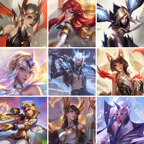 【重要头像】爱情之歌 泳池派对佐伊 EDG厄斐琉斯 EDG佛耶戈 EDG格雷福斯 EDG悠米 EDG佐伊 星守金克丝炫彩 灵魂莲华辛德拉 灵魂莲华莉莉娅炫彩 灵魂莲华莉莉娅 北极星神黛安娜 剪纸仙灵艾瑞莉娅 剪纸仙灵希维尔 春晖神女艾希 至臻青花瓷丽桑卓 至臻奥术师佐伊