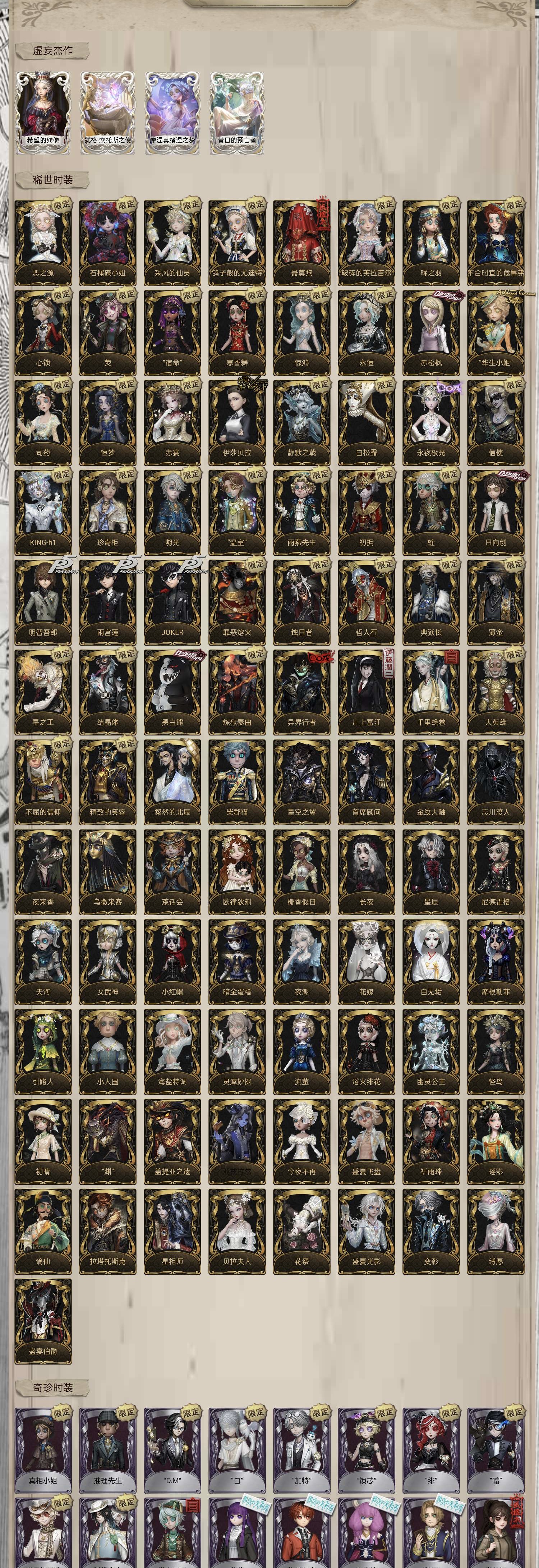 恶之源/鸽子/采风的仙灵/恒梦/晖之羽/心锁/宿命/荧/永恒/惊鸿/寒香舞/信使/白松露/永夜极光/珍奇柜/雨燕先生/日向创/蝰/初拥/kingh1/joker/明智吾郎/星之王/温室/结晶体/黑白熊等