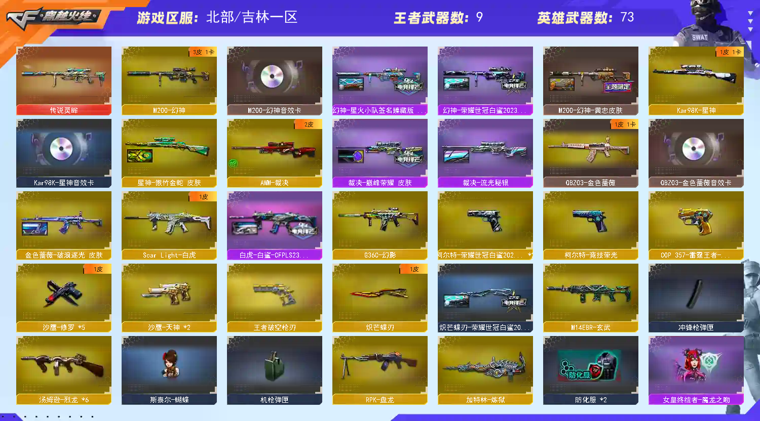 【允许排位】⭐灵眸+幻神白鲨星火+星神金蛇+蔷薇破浪均带卡+白虎白鲨+裁决秘银巅峰+满副+白鲨蝴蝶刀+6烈⭐
