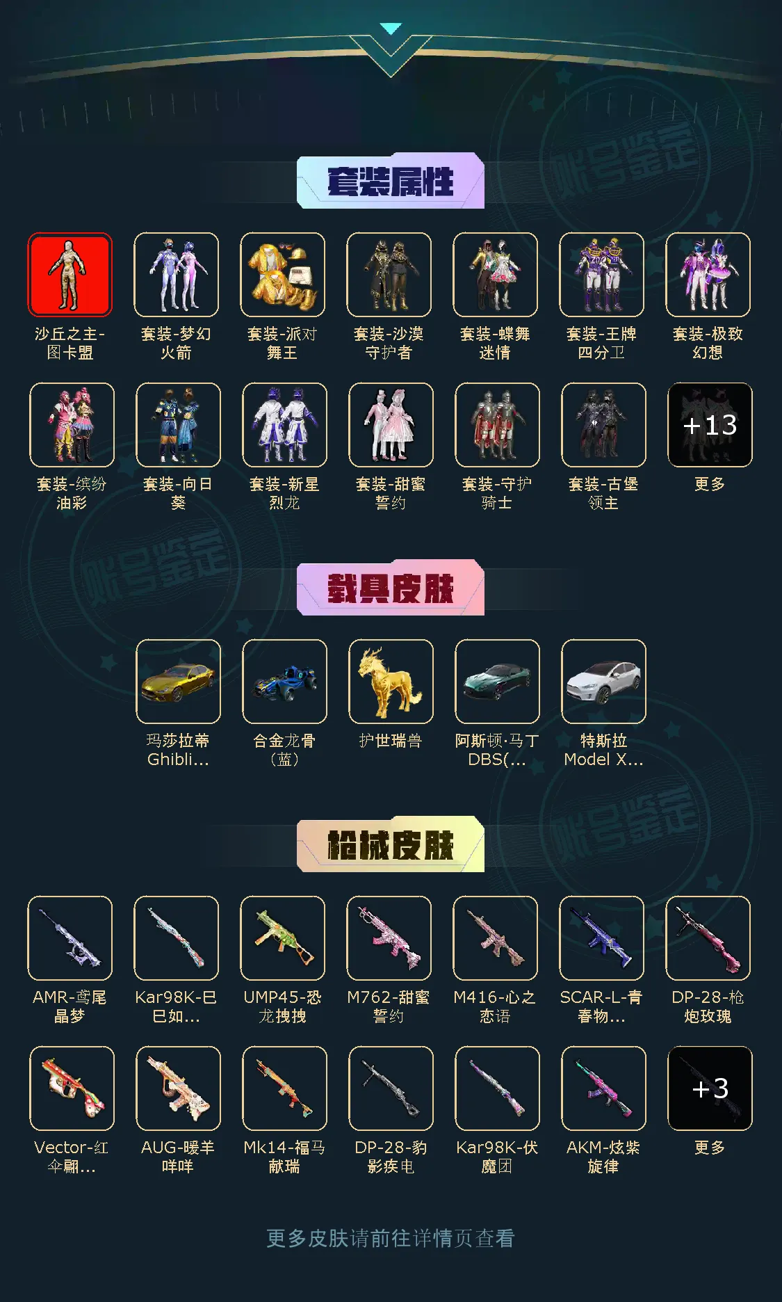 【稀有资产】沙丘之主-图卡盟[2级]/巡查员上衣/套装-派对舞王/套装-沙漠守护者/套装-奇异狩猎者/套装-粉红小猪/套装-浪漫天命/套装-潮萌小黄鸭/套装-雪山精英/套装-暗影哥特/套装-龟仙人/套装-迅捷狂鲨/套装-胖达团团/套装-浪漫波比/套装-星河浪客/套装-兔兔白日梦/套装-晶辉守护/角色-都市丽猫/角色-俏兔智灵/套装-暗夜武装/套装-缤纷假日/套装-纯白跃动/套装-动感兔斯基人偶服/套装-光子十周年/套装-狂沙舞者/套装-狂战萌兔/套装-浪漫假日/套装-青涩年华
