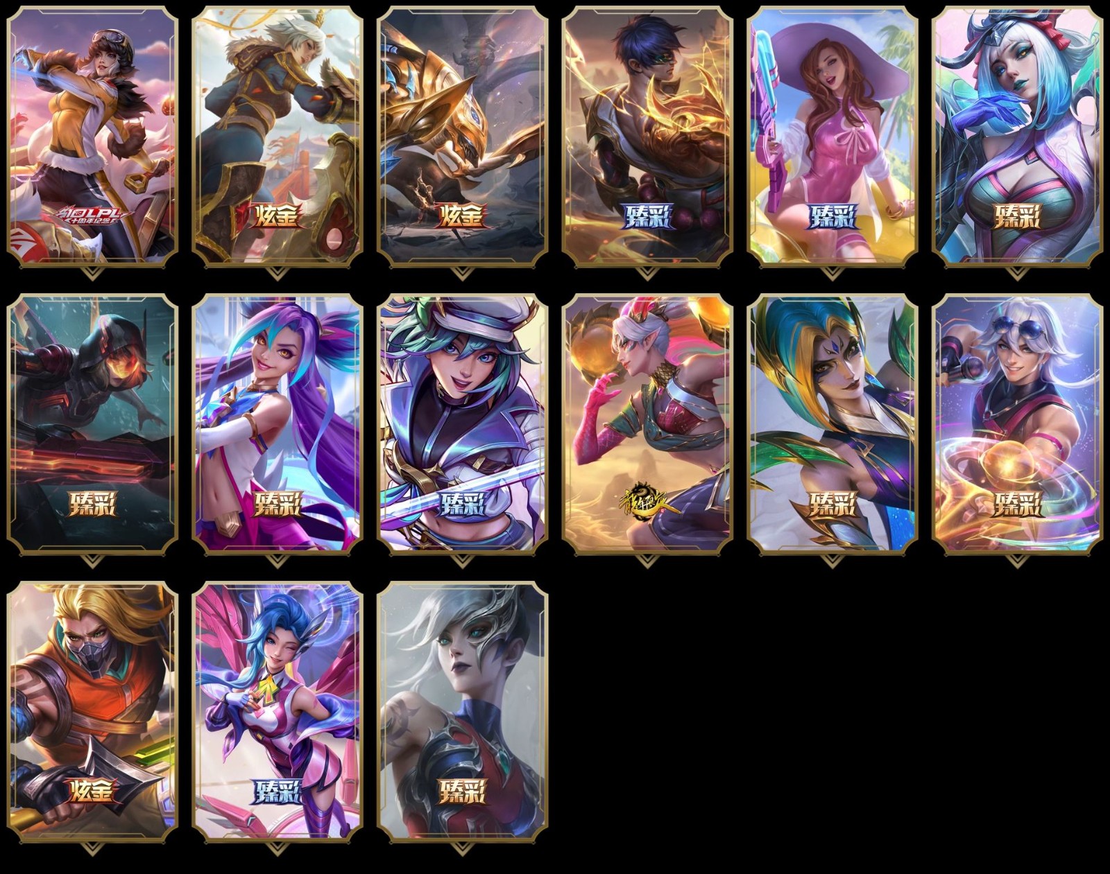 【重要皮肤】黑色玫瑰假面舞会卡特琳娜至臻 魔域梦魇泽丽至臻 T1杰斯至臻 北极星钢影卡蜜尔至臻 魔女阿卡丽至臻 剪纸仙灵希维尔至臻 至高天奎桑提至臻 西部魔影猎天使恶魔泰隆至臻 战斗学院蕾欧娜至臻 真实伤害亚索至臻 真实伤害赛娜至臻 源计划逆流塞拉斯至臻 源计划阴劫至臻 黑夜使者凯隐至臻 神龙尊者均衡之龙沃利贝尔至臻 征服者贾克斯至臻 KDA二代卡莎至臻 KDA一代卡莎至臻 KDA伊芙琳至臻 烈焰美人薇恩至臻 烈焰美人薇恩2022至臻 电玩女神凯特琳至臻 电玩女神凯特琳2022至臻 魅惑女巫厄运小姐至臻 星之守护者妮蔻至臻 星之守护者妮蔻2022至臻 源计划正义艾瑞莉娅至臻 源计划正义艾瑞莉娅2022至臻 绒毛菲兹至臻 玉剑传说武剑仙至臻 玉剑传说武剑仙2022至臻 腥红之月亚托克斯至臻 腥红之月亚托克斯2022至臻 未来战士锤石至臻 未来战士锤石2022至臻 殿堂传奇乐芙兰 灰烬守护者慎 灰烬骑士莫德凯撒 灰烬骑士派克 海克斯科技雷克顿 海克斯科技克格莫 海克斯科技斯维因 海克斯科技波比 海克斯科技嘉文四世 海克斯科技阿木木 暗星科加斯 零之枪骑赫卡里姆 摄魂使者薇恩 新创战纪希维尔 胜利剑圣易 胜利女神娑娜 胜利之王泰达米尔 胜利巨口克格莫 舞会公主安妮 星之守护者伊泽瑞尔 玉剑传说无影 玉剑传说舞剑仙 点心宝贝阿木木 天龙之子斯莫德 替父从军花木兰 碧玉之牙卡西奥佩娅 你看见过我的熊猫吗安妮 北辰之威内瑟斯 美猴王孙悟空 定海神珍孙悟空 玉净夜叉凯特琳 广寒仙子嫦娥 虎痴之拳蔚 纳财大帝塔姆 神龙之翼库奇 胜利女神奥莉安娜 胜利枪神卢锡安 胜利之剑亚托克斯 水晶玫瑰阿克尚 甜心之翎洛 觅心游侠卢锡安 觅心女王艾希 觅心萝莉金克丝 觅心猎手薇恩 北极星钢影卡蜜尔 圣诞老人布隆 冰雪风暴希维尔 魄罗骑士瑟庄妮 夺命美人卡特琳娜 平安夜女神娑娜 圣诞糖果棒厄运小姐 魅惑女巫莫甘娜 魅惑女巫奈德丽 海之歌萨勒芬妮 海之歌泽丽 泳池派对凯特琳 泳池派对佐伊 泳池派对格雷福斯 泳池派对李青 泳池派对雷克顿 电玩战魂赫卡里姆 送披萨的小姐姐希维尔 克格汪 制胜金靴李青 iG卡蜜尔 iG卡莎 iG艾瑞莉娅 SSG伊泽瑞尔 SKTT1烬 SKTT1辛德拉 SKTT1艾克 SKTT1阿利斯塔 SKTT1卡莉丝塔 SKTT1瑞兹 SKTT1阿兹尔 SKTT1伊莉丝 SKTT1雷克顿 SSW锤石 SSW雷恩加尔 SSW泰隆 SSW图奇 SSW辛吉德 SKTT1贾克斯 SKTT1劫 SKTT1婕拉 SKTT1李青 暗杀星蒙多 暗杀星伊泽瑞尔 暗杀星慎 Fnatic迦娜 Fnatic库奇 Fnatic嘉文四世 Fnatic卡尔萨斯 冰雪节辛吉德 防暴机器人布里茨 防暴士兵格雷福斯 防暴士兵辛吉德 防暴天使凯尔 冠军典狱长锤石 冠军掠夺者卡兹克 冠军之刃锐雯2016 冠军之血希瓦娜 冠军之隐劫 春晖神女艾希 鬼影森森茂凯 鬼影重重魔腾 胡桃夹子萨科 警用试作体K9内瑟斯 密林猎手提莫 南瓜头费德提克 圣诞精灵崔丝塔娜 圣诞开心鬼提莫 圣诞狂欢努努和威朗普 圣诞老人古拉加斯 圣诞玩偶波比 圣诞驯鹿克格莫 糖果使徒费德提克 外星装甲库奇 无头骑士赫卡里姆 喜庆之树茂凯 邪恶圣诞老人维迦 幸福女神乐芙兰 雪默丁格 野兽猎人瑟庄妮 永恒之森乐芙兰 征服者卡尔玛 征服者韦鲁斯 暗影沃里克 冠军之箭艾希 战场BOSS吉格斯 阿木木主人不要我了 波比的巧克力工坊 都铎王朝图奇 十五周年纪念希维尔 十周年纪念安妮 源代码乐芙兰 神凰行者瑞羽圣凰艾尼维亚 胜利凤凰艾尼维亚 武装战姬厄运小姐