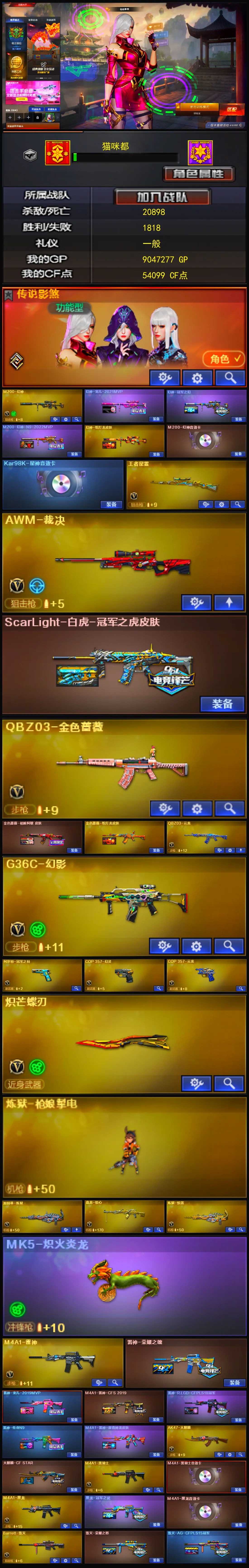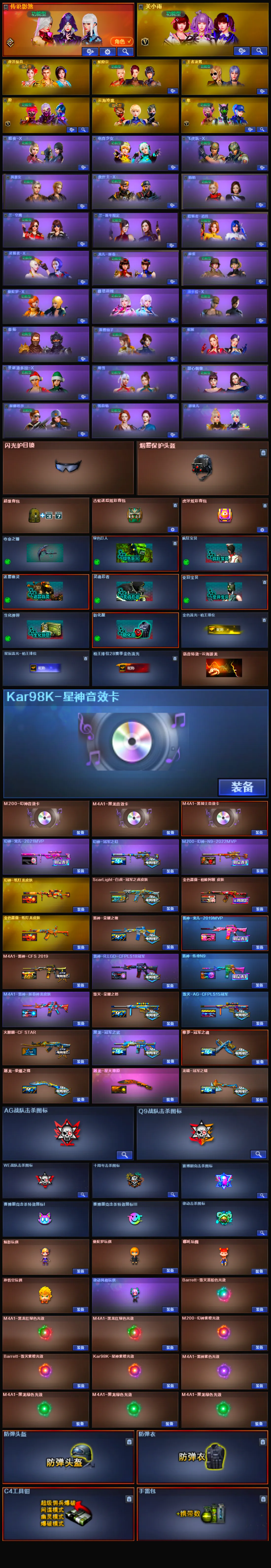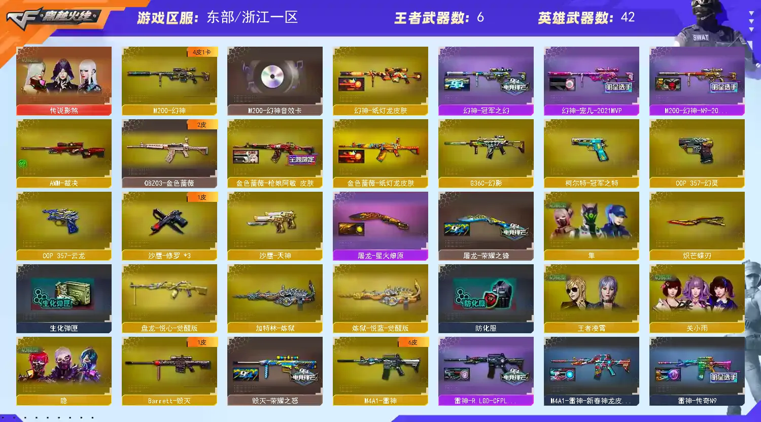 【传说影煞】【m200幻神+音效卡+纸灯龙皮肤+宠儿2021mvp+n92022mvp+冠军之幻】【星神音效卡】【王者星霆】【云龙套】【qbz03金色蔷薇+纸灯龙皮肤+呛娘阿敏皮肤】【金色蔷薇古蛇迷踪】【白虎冠军之虎皮肤】【白虎九尾白狐】【g36c幻影】【炽芒蝶刃】【柯尔特冠军之特】【usp雷神深海特遣队】【炼狱+盘龙悦心+炼狱悦蓝+烈龙云海游龙+炼狱呛娘掣电】【雷神+荣耀之魄+宠儿2019mvp+传奇n9+rlgdcfpls18冠军】【火麒麟+呛娘凯萨林】【毁灭+荣耀之怒+agcfpls15冠军】【黑龙+音效卡+冠军之武】【屠龙+星火燎原+荣耀之锋】【黑骑士+音效卡】【王者之城 王者之圣 王者之决】【炫金无影】【火麒麟 黑龙 雷神 黑骑士 黑武士锦绣游龙 超新星热带奇洋 毁灭 裁决】【修罗 天神 cop357幻灵 修罗古蛇迷踪】【屠龙 龙啸 擎天云海游龙 幻灵之锋 龙啸热带奇洋 龙啸烈火龙威】【小人呛 hk417朱雀蛇隐宗 雷神精英刀锋 白虎呛娘安妮 火麒麟灵狐 天龙曼陀罗】【动物呛 mk5炽火炎龙 scar马呛】【四防 王者凌霄】【角色 关小雨 奇洋探员 蛇隐宗 隐 云海玲珑 隼 热带奇洋炫彩背包 虎牙炫彩背包】