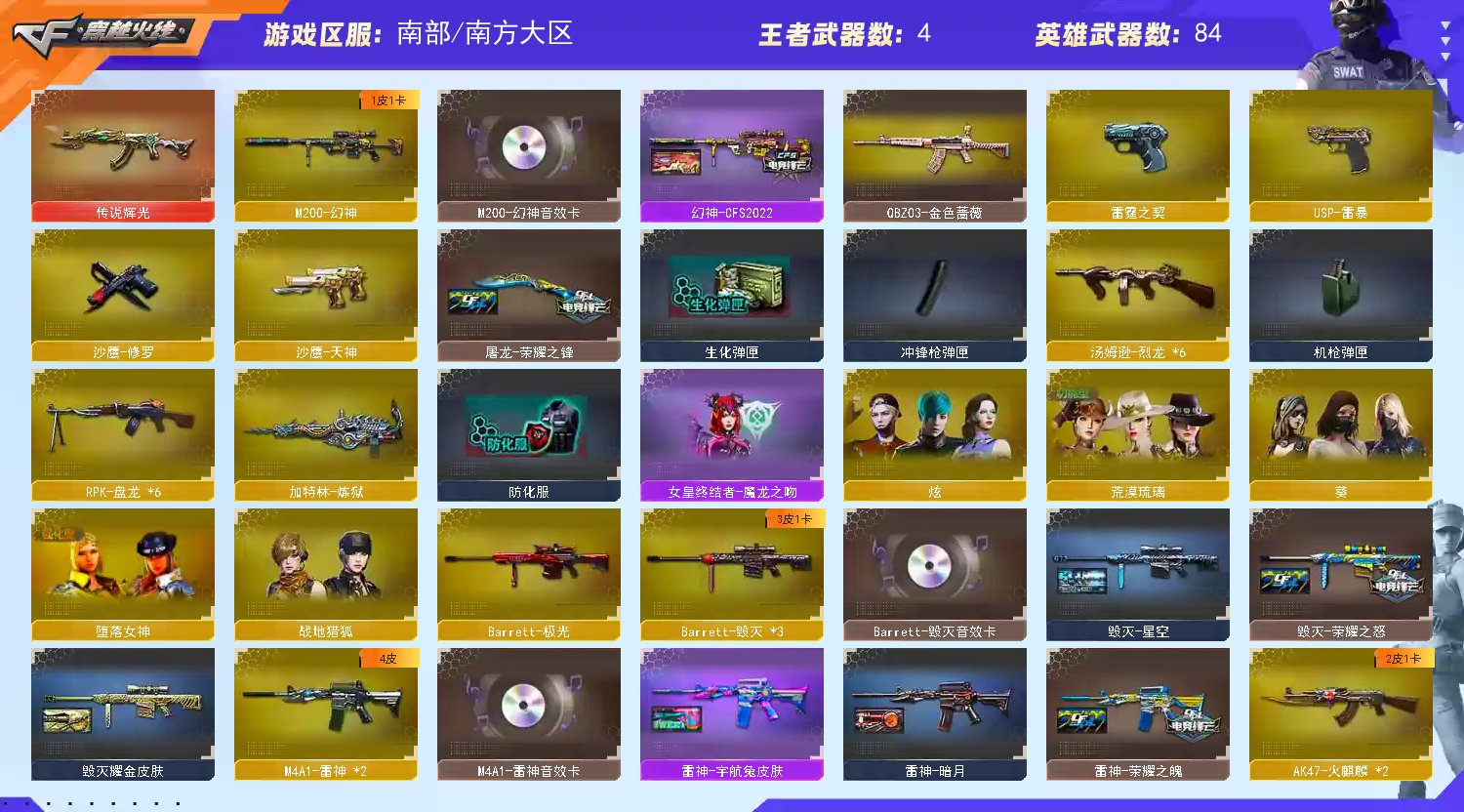 【Lv.102 荣耀元帅】【☀幻神音效卡+幻神2022皮☀雷暴套✨王者星神☀雷霆套☀白虎电玩蓝兔☀荒漠琉炼狱6烈6盘✨】VIP4 90V 1王者 2炫金 传说辉光/幻神 CFS2022 /毁灭星空/毁灭荣耀之怒/毁灭耀金/毁灭青帝/火麒麟 CFSTAR /火麒麟AG/火麒麟平天大圣/火麒麟心动糖果/刘备/_葵/_炫/荒漠琉璃/M200-幻神/ Barrett -毁灭(3)/ Barrett -极光/ barrett -金色蔷薇/ Barrett -暗月传说(2)/雷暴套装/M200-幻神音效卡/M4A1-黑骑士音效卡/M4A1-雷神音效卡/ Barrett -毁灭音效卡/AK47-火麒麟音效卡