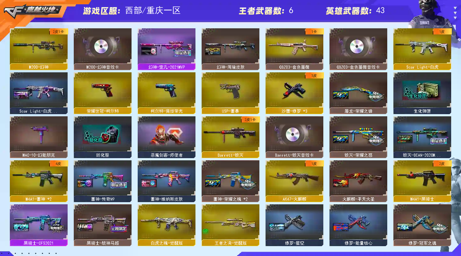 幻神宠儿周瑜皮+幻神音效卡✨usp雷暴竞技柯尔特✨白虎之魄世冠套蔷薇音效卡白虎✨战神马超传奇✨ 【荣耀之巅200豆】【Lv.102 荣耀元帅】VIP6 48V 1王者 幻神宠儿/幻神周瑜/毁灭BEAN/毁灭荣耀之怒/火麒麟平天大圣/无影能量核心/雷神传奇N9/雷神荣耀之魄/雷神维纳斯/黑骑士CFS2021/M200-幻神/Barrett-毁灭/王者之决-觉醒版/M4A1-雷神(2)/M4A1-黑骑士/M200-幻神音效卡/QBZ03-金色蔷薇音效卡/Barrett-毁灭音效卡