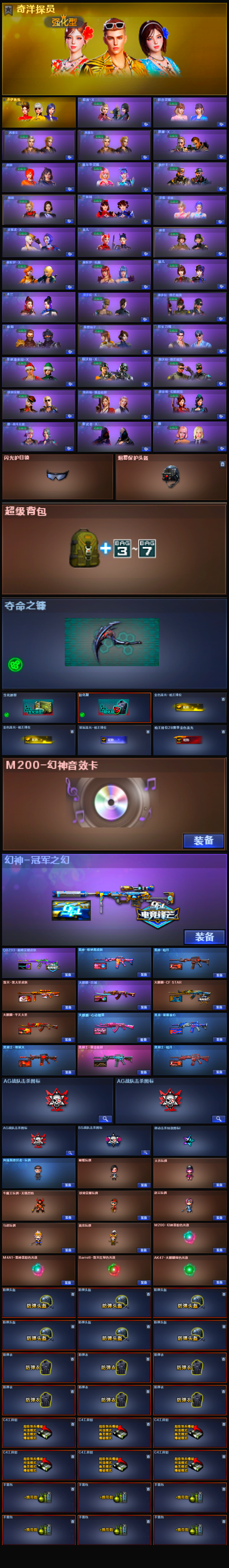 【m200-幻神+幻神音效卡+幻神-冠军之幻】【qbz金色蔷薇+巅峰荣耀】【hk417-朱雀】【王者青龙】【黑骑士+黑骑士-地狱火】【火麒麟 雷神 黑骑士 机械迷城 无影神兵利器 超新星热带奇洋 毁灭 修罗 麒麟刺 龙啸热带奇洋 龙啸云海游龙 龙啸烈火龙威】【挑战武器】【角色 奇洋探员 乔伊教练 暗夜x 初恋灵狐 嘉年华灵狐 潘多拉x 幽 樱战斗天使 妲己+热带奇洋炫彩背包】