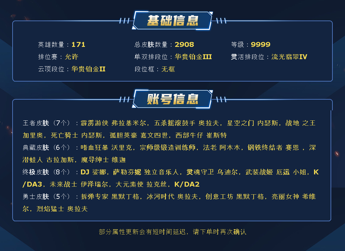 【重要皮肤】双城之战2指挥官凯特琳至臻 狼神英灵斯维因至臻 T1杰斯至臻 至高天凯尔至臻 西部魔影伊芙琳至臻 青花瓷千珏至臻 天龙之子伊泽瑞尔至臻 北极星钢影卡蜜尔至臻 心之钢永恩至臻 魔女阿卡丽至臻 魂蔷薇烈娜塔至臻 玉剑传说琴仙子至臻 斗魂觉醒萨科至臻 斗魂觉醒派克至臻 DRX亚托克斯至臻 墨之影武者亚索至臻 绝息圣堂厄运小姐至臻 剪纸仙灵希维尔至臻 青花瓷丽桑卓至臻 北极星使者沃里克至臻 太空律动魔音海妖娜美至臻 至高天奎桑提至臻 灵魂莲华易至臻 海珀利安小队X09星环灵风迦娜至臻 星之守护者辛德拉至臻 星之守护者艾克至臻 海之歌萨勒芬妮至臻 西部魔影猎天使恶魔泰隆至臻 月蚀骑士赛娜至臻 幻灵战斗猫金克丝至臻 青花瓷拉克丝至臻 神凰行者烈羽焰凰霞至臻 魅惑女巫莫甘娜至臻 女帝黛安娜至臻 战斗学院蕾欧娜至臻 太空律动璐璐至臻 魔女婕拉至臻 魔女乐芙兰至臻 奥术师佐伊至臻 未来战士卢锡安至臻 真实伤害亚索至臻 真实伤害赛娜至臻 星之守护者索拉卡至臻 灵魂莲华提莫至臻 灵能特工伊泽瑞尔至臻 福牛守护者菲奥娜至臻 源计划逆流塞拉斯至臻 源计划阴劫至臻 王国机神玄武盖伦至臻 暗星墨菲特至臻 神龙尊者炎龙瑟提至臻 黑夜使者凯隐至臻 神龙尊者均衡之龙沃利贝尔至臻 征服者贾克斯至臻 飞升战神潘森至臻 焰执事布兰德至臻 KDA二代卡莎至臻 KDA一代卡莎至臻 KDA卡莎2022至臻 KDA阿狸至臻 KDA阿狸2022至臻 KDA伊芙琳至臻 KDA伊芙琳2022至臻 KDA阿卡丽至臻 战斗学院拉克丝至臻 战斗学院拉克丝2022至臻 烈焰美人薇恩至臻 烈焰美人薇恩2022至臻 电玩女神凯特琳至臻 电玩女神凯特琳2022至臻 魅惑女巫厄运小姐至臻 魅惑女巫厄运小姐2022至臻 星之守护者妮蔻至臻 源计划正义艾瑞莉娅至臻 源计划正义艾瑞莉娅2022至臻 真实伤害奇亚娜至臻 绒毛菲兹至臻 绒毛菲兹2022至臻 玉剑传说武剑仙至臻 玉剑传说武剑仙2022至臻 腥红之月亚托克斯至臻 腥红之月亚托克斯2022至臻 未来战士锤石至臻 未来战士锤石2022至臻 黑夜使者李青至臻 黑夜使者李青2022至臻 殿堂传奇乐芙兰 水晶巫灵泽拉斯 灰烬骑士莫德凯撒 灰烬骑士派克 灰烬征服者潘森 灰烬杀手塞拉斯 海克斯科技安妮 海克斯科技瑟庄妮 海克斯科技雷克顿 海克斯科技克格莫 海克斯科技斯维因 海克斯科技吉格斯 海克斯科技玛尔扎哈 海克斯科技波比 海克斯科技嘉文四世 海克斯科技阿利斯塔 海克斯科技阿木木 海克斯科技拉莫斯 海克斯科技魔腾 海克斯科技崔丝塔娜 新卧虎藏龙贾克斯 水晶掠夺者卡兹克 水晶圣骑艾希 水晶圣骑塔莉垭 水晶圣骑蕾欧娜 永恒之森奥恩 光明哨兵奥拉夫 黎明使者卡尔玛 恐惧新星德莱厄斯 零之枪骑赫卡里姆 摄魂使者薇恩 新创战纪希维尔 青年瑞兹 胜利剑圣易 胜利女神娑娜 胜利女神希维尔 胜利之王泰达米尔 胜利巨口克格莫 冰原狙击凯特琳 舞会公主安妮 创星之灵璐璐 奥斯曼大帝泰达米尔 养蜂人辛吉德 勇敢的心德莱厄斯 电玩女神厄运小姐 电玩勇者锐雯 电玩女神阿狸 星之守护者伊泽瑞尔 玉剑传说舞剑仙 女帝厄运小姐 玉剑传说神机花火 玉剑传说舞龙卫 星之守护者佐伊 灵能特工易 黎明使者薇恩 点心宝贝阿木木 龙的传人李青 银龙裁决泰隆 天龙之子斯莫德 虎头虎脑崔丝塔娜 替父从军花木兰 神龙烈焰金克丝 碧玉之牙卡西奥佩娅 古琴余韵娑娜 春晖神女拉克丝 你看见过我的熊猫吗安妮 北辰之威内瑟斯 南天之怒沃里克 美猴王孙悟空 定海神珍孙悟空 玉净夜叉凯特琳 紫金罗刹莫甘娜 广寒仙子嫦娥 虎痴之拳蔚 张辽文远 司马懿仲达 金猪烈焰瑟庄妮 烈焰美人薇恩 纳财大帝塔姆 醒狮克格莫 神龙之翼库奇 征服者贾克斯 王国机神青龙德莱文 王国机神朱雀蕾欧娜 王国机神苍狼瑟提 王国机神白虎贾克斯 王国机神玄武盖伦 福牛守护者嘉文四世 胜利女神瑟庄妮 胜利之树茂凯 胜利女神奥莉安娜 胜利枪神格雷福斯 胜利枪神卢锡安 胜利之剑亚托克斯 怦然心动凯特琳 幽梦玫瑰伊莉丝 碎心之拳蔚 甜心之羽霞 甜心之翎洛 甜心宝贝安妮 甜心宝贝娑娜 穿心之剑菲奥娜 觅心游侠卢锡安 觅心魔灵奥莉安娜 觅心女王艾希 觅心之翼奎因 觅心萝莉金克丝 觅心猫猫悠米 觅心猎手薇恩 幽梦玫瑰辛德拉 幽梦玫瑰泰隆 水晶玫瑰婕拉 水晶玫瑰斯维因 双城之战2微光实验室辛吉德 北极星猎人斯维因 北极星使者沃里克 冬境仙灵索拉卡 寒冬精灵璐璐 冬季仙境奥莉安娜 雪球也能爆炸吉格斯 圣诞捣蛋鬼金克丝 圣诞老人布隆 圣诞老人德莱文 冰雪驯鹿波比 冰雪风暴希维尔 冬季仙境卡尔玛 持胡萝卜的雪人易 狂心冰王图奇 冰封王子蒙多 冰雪女神辛德拉 魄罗骑士瑟庄妮 夺命美人卡特琳娜 平安夜女神娑娜 圣诞糖果棒厄运小姐 魅惑女巫迦娜 魅惑女巫厄运小姐 魅惑女巫莫甘娜 魅惑女巫崔丝塔娜 魅惑女巫奈德丽 魅惑女巫伊莉丝 伯爵卡萨丁 大魔法锅布里茨 大魔王提莫 死亡誓约卡特琳娜 死亡誓约维克托 灵魂收割者索拉卡 克烈古拉伯爵 小恶魔菲兹 南瓜头王子阿木木 勇敢的心德莱厄斯 海之歌艾希 海之歌奈德丽 海之歌萨勒芬妮 海之歌永恩 海之歌泽丽 泳池派对凯特琳 泳池派对佐伊 泳池派对普朗克 泳池派对辛德拉 泳池派对奥莉安娜 泳池派对嘉文四世 泳池派对黑默丁格 泳池派对塔莉垭 泳池派对厄运小姐 泳池派对塔里克 
