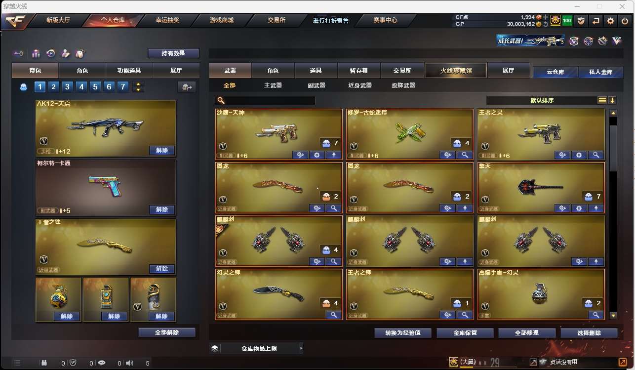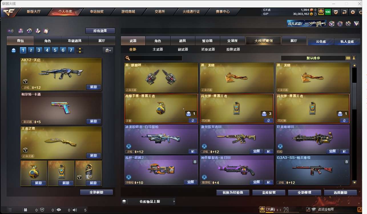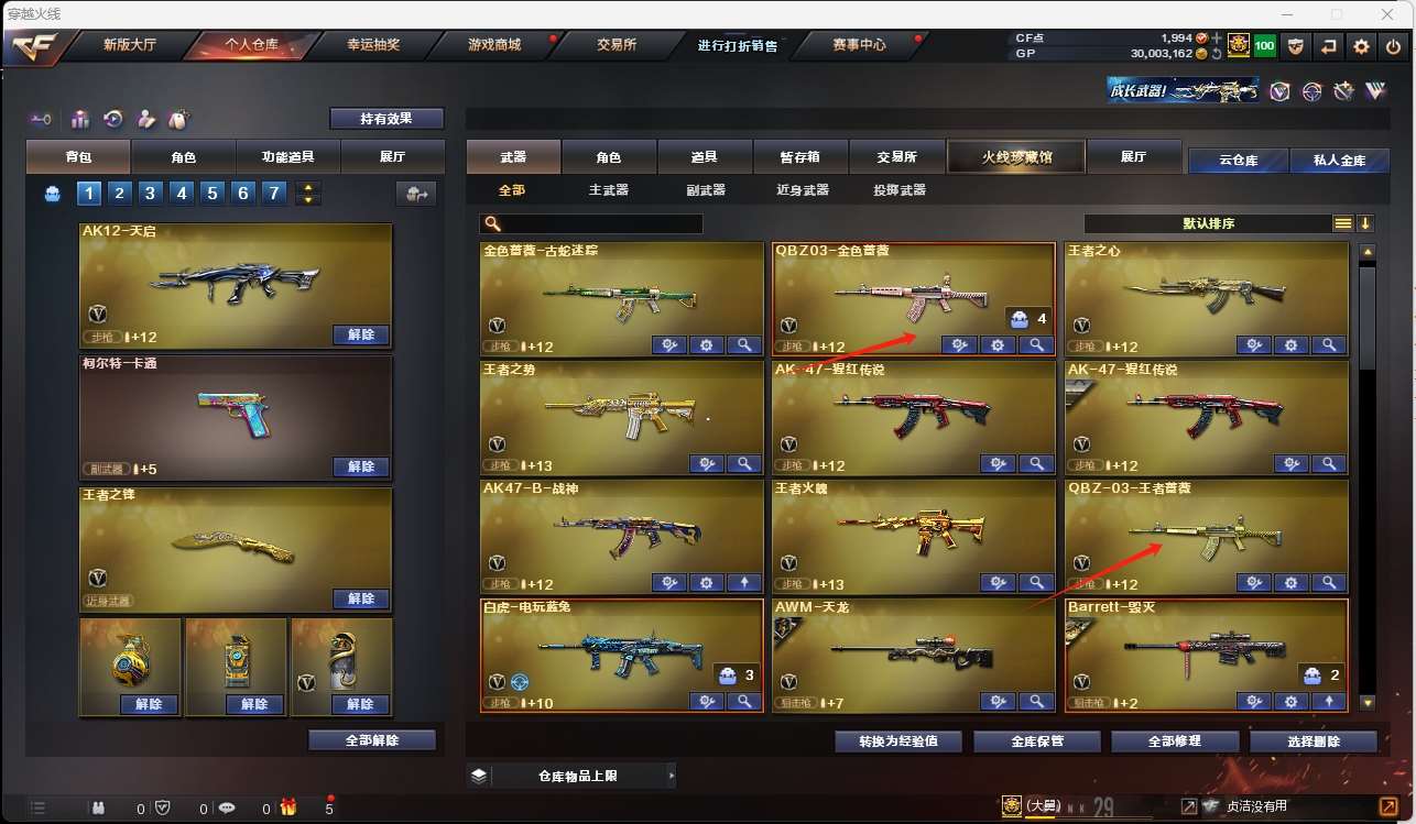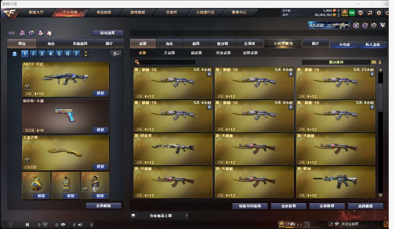 【m200幻神+青鹤】【qbz金色蔷薇+卡】【火麒麟+斗鱼皮肤】【黑龙】【雷神】【毁灭+卡】【极光】 【武器:王者之心 王者之势 王者火魄 qbz王者蔷薇 白虎电玩蓝兔 王者之怒 天龙 盘龙 炼狱】 【手呛:修罗*2 沙鹰天神 修罗古蛇迷踪 王者之灵】 【刀具:天龙*2 擎天 麒麟刺*3 幻灵之峰 王者之锋】 【雷套:幻灵雷】 【小人呛:朱雀蛇隐宗】 【音效卡:金色蔷薇音效卡 毁灭音效卡 】 【四防角色:王者凌霄】