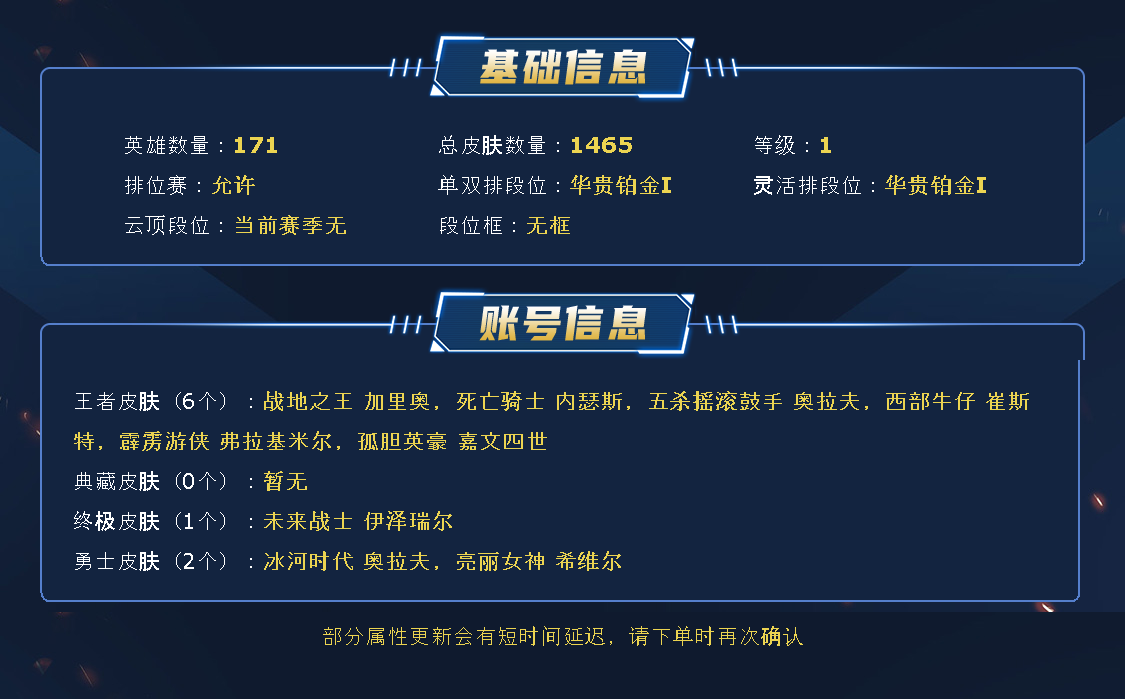 ~~喜欢记得收藏~~可排位~~1360皮全英雄~~租之前尽量查一下游戏ID,确保段位是您需要的,避免浪费您的时间~~请勿挂机逃跑故意送人头,谢谢合作,谢谢~~