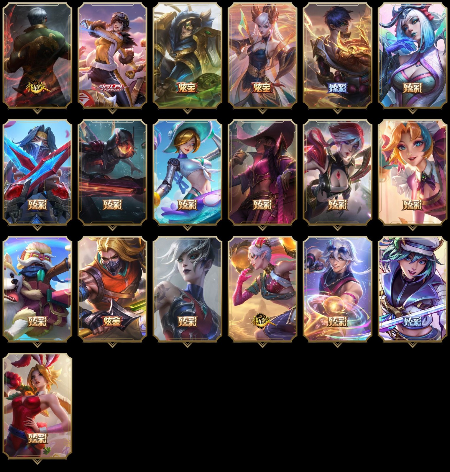 【重要皮肤】黑色玫瑰假面舞会卡特琳娜至臻 心之钢永恩至臻 魔女阿卡丽至臻 玉剑传说琴仙子至臻 斗魂觉醒派克至臻 墨之影武者亚索至臻 花仙使者卡特琳娜至臻 海珀利安小队X09星环灵风迦娜至臻 星之守护者辛德拉至臻 海之歌萨勒芬妮至臻 月蚀骑士赛娜至臻 幻灵战斗猫金克丝至臻 青花瓷拉克丝至臻 神凰行者烈羽焰凰霞至臻 魅惑女巫莫甘娜至臻 女帝黛安娜至臻 战斗学院蕾欧娜至臻 太空律动璐璐至臻 魔女婕拉至臻 魔女乐芙兰至臻 奥术师佐伊至臻 未来战士卢锡安至臻 真实伤害赛娜至臻 星之守护者索拉卡至臻 灵魂莲华提莫至臻 灵能特工伊泽瑞尔至臻 福牛守护者菲奥娜至臻 源计划逆流塞拉斯至臻 暗星墨菲特至臻 黑夜使者凯隐至臻 神龙尊者均衡之龙沃利贝尔至臻 征服者贾克斯至臻 KDA二代卡莎至臻 KDA一代卡莎至臻 KDA伊芙琳至臻 KDA阿卡丽至臻 KDA阿卡丽2022至臻 战斗学院拉克丝至臻 烈焰美人薇恩至臻 电玩女神凯特琳至臻 电玩女神凯特琳2022至臻 魅惑女巫厄运小姐至臻 魅惑女巫厄运小姐2022至臻 星之守护者妮蔻至臻 星之守护者妮蔻2022至臻 源计划正义艾瑞莉娅至臻 源计划正义艾瑞莉娅2022至臻 真实伤害奇亚娜至臻 真实伤害奇亚娜2022至臻 绒毛菲兹至臻 绒毛菲兹2022至臻 玉剑传说武剑仙至臻 未来战士锤石至臻 未来战士锤石2022至臻 黑夜使者李青至臻 黑夜使者李青2022至臻 灰烬守护者慎 灰烬骑士派克 灰烬杀手塞拉斯 海克斯科技安妮 海克斯科技雷克顿 海克斯科技克格莫 海克斯科技斯维因 海克斯科技吉格斯 海克斯科技玛尔扎哈 海克斯科技波比 海克斯科技嘉文四世 海克斯科技阿利斯塔 海克斯科技崔丝塔娜 水晶圣骑艾希 水晶圣骑蕾欧娜 暗星科加斯 零之枪骑赫卡里姆 摄魂使者薇恩 哥特萝莉安妮 创星之灵璐璐 荣誉使者玛尔扎哈 养蜂人辛吉德 电玩女神阿狸 玉剑传说舞剑仙 海珀利安小队Y03权天使卡蜜尔 玉剑传说无劫 玉剑传说舞龙卫 点心宝贝阿木木 剪纸仙灵嘉文四世 剪纸仙灵烬 龙的传人李青 银龙裁决泰隆 烈焰仙子黛安娜 替父从军花木兰 春晖神女拉克丝 你看见过我的熊猫吗安妮 南天之怒沃里克 美猴王孙悟空 广寒仙子嫦娥 虎痴之拳蔚 张辽文远 司马懿仲达 金猪烈焰瑟庄妮 烈焰美人薇恩 神龙之翼库奇 胜利女神瑟庄妮 胜利之树茂凯 胜利机器人布里茨 胜利女神奥莉安娜 胜利枪神卢锡安 胜利女神伊莉丝 胜利之剑亚托克斯 怦然心动凯特琳 碎心之拳蔚 甜心宝贝安妮 觅心萝莉金克丝 寒冬精灵璐璐 雪球也能爆炸吉格斯 冰雪风暴希维尔 冰雪女神辛德拉 魄罗骑士瑟庄妮 夺命美人卡特琳娜 平安夜女神娑娜 圣诞糖果棒厄运小姐 魅惑女巫崔丝塔娜 死亡誓约卡特琳娜 灵魂收割者索拉卡 海之歌奈德丽 泳池派对凯特琳 泳池派对佐伊 泳池派对奥莉安娜 泳池派对塔莉垭 泳池派对厄运小姐 泳池派对李青 泳池派对雷克顿 御星魔矢艾希 送披萨的小姐姐希维尔 克格汪 制胜金靴李青 DRX艾希 iG卡蜜尔 iG洛 iG卡莎 iG艾瑞莉娅 iG乐芙兰 iG菲奥娜 SSG纳尔 SSG塔莉垭 SKTT1艾克 SKTT1阿利斯塔 SKTT1卡莉丝塔 SSW图奇 SSW辛吉德 SKTT1贾克斯 SKTT1劫 SKTT1李青 暗杀星蒙多 暗杀星努努和威朗普 暗杀星伊泽瑞尔 Fnatic迦娜 Fnatic库奇 Fnatic古拉加斯 冰雪节格雷福斯 冰雪节玛尔扎哈 冰雪节辛吉德 防暴天使凯尔 冠军典狱长锤石 冠军掠夺者卡兹克 鬼影森森茂凯 鬼影重重魔腾 海贼瑞兹 胡桃夹子萨科 惊悚派对阿木木 蓝色忧郁崔斯特 密林猎手提莫 圣诞精灵崔丝塔娜 圣诞开心鬼提莫 圣诞狂欢基兰 圣诞狂欢努努和威朗普 圣诞老人古拉加斯 圣诞玩偶波比 圣诞驯鹿克格莫 糖果使徒费德提克 外星装甲库奇 无头骑士赫卡里姆 喜庆之树茂凯 邪恶圣诞老人维迦 幸福女神乐芙兰 雪默丁格 雪球也能爆炸吉格斯 雪装奈德丽 野兽猎人德莱文 野兽猎人瑟庄妮 野兽猎人泰达米尔 永恒之森乐芙兰 勇者阿狸 征服者卡尔玛 暗影沃里克 冠军之箭艾希 魅惑女巫菲奥娜 阿木木主人不要我了 波比的巧克力工坊 都铎王朝图奇 十周年纪念安妮 源代码乐芙兰 神凰行者瑞羽圣凰艾尼维亚 胜利凤凰艾尼维亚 DJ娑娜 绝息圣堂洛