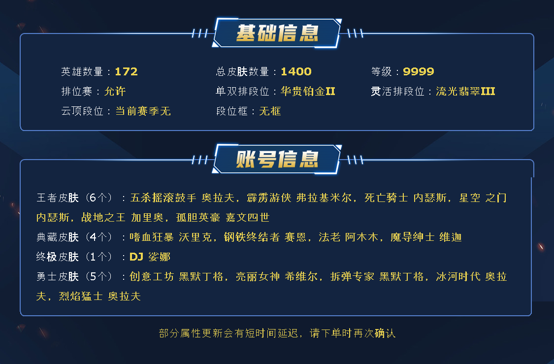 ~~喜欢记得收藏~~可排位~~1293皮全英雄~~租之前尽量查一下游戏ID,确保段位是您需要的,避免浪费您的时间~~请勿挂机逃跑故意送人头,谢谢合作,谢谢~~