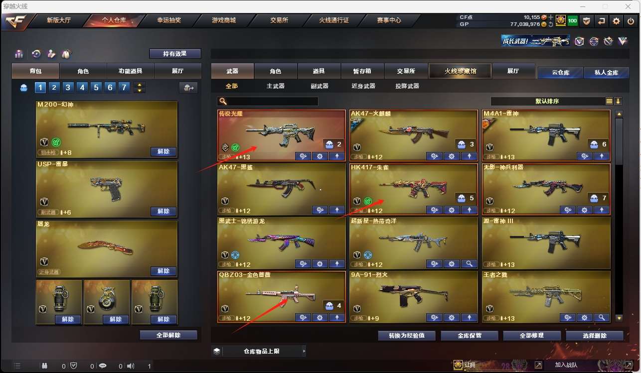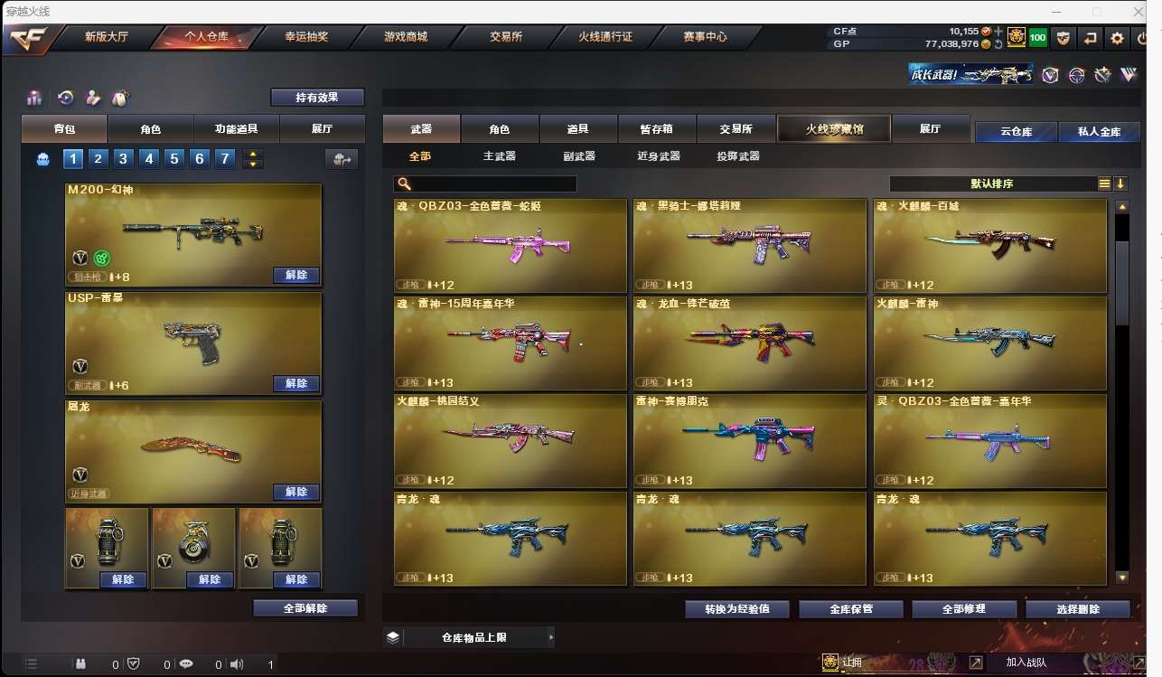 【m200幻神+黄忠+usp雷暴】【6烈龙 炼狱 斯太尔蝴蝶】【传说光耀】【qbz金色蔷薇】【hk417朱雀】【火麒麟】【雷神+卡】【毁灭+卡+ag15冠军】【裁决】 【武器:王者之戮 海王 】 【手呛:修罗*3 沙鹰天神*2 】 【刀具:屠龙*2 擎天 麒麟刺 斩神刀雷暴 马来剑夜魔 】 【雷套:雷暴雷*4 夜魔雷】 【小人呛:】 【音效卡: 雷神音效卡 毁灭音效卡】 【四防角色:职业经理】