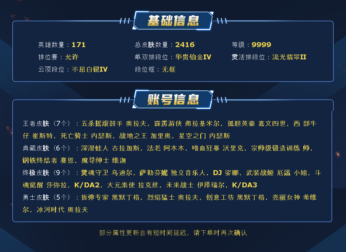 ~~喜欢记得收藏~~可排位~~2383皮全英雄丨1436原皮947炫彩~~租之前尽量查一下游戏ID,确保段位是您需要的,避免浪费您的时间~~请勿挂机逃跑故意送人头,谢谢合作,谢谢~~