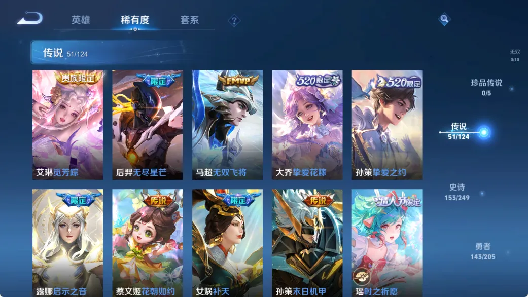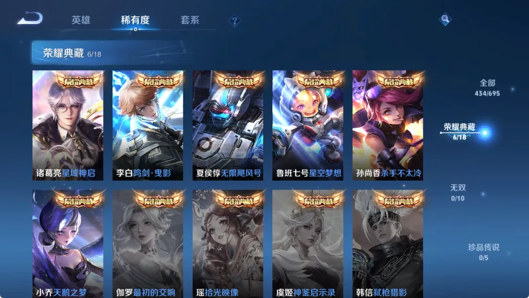 天鹅之梦,星空梦想,无限飓风号,鸣剑·曳影,星域神启,天魔缭乱,白虎志,李逍遥,零号·赤焰,炽阳神光,梅西,至尊宝,神威,纯白花嫁,真爱至上,匿光追影者,无双飞将,时之祈愿瑶,挚爱之约,挚爱花嫁,补天,异界灵契,启示之音,神树通天,傲雪梅枪