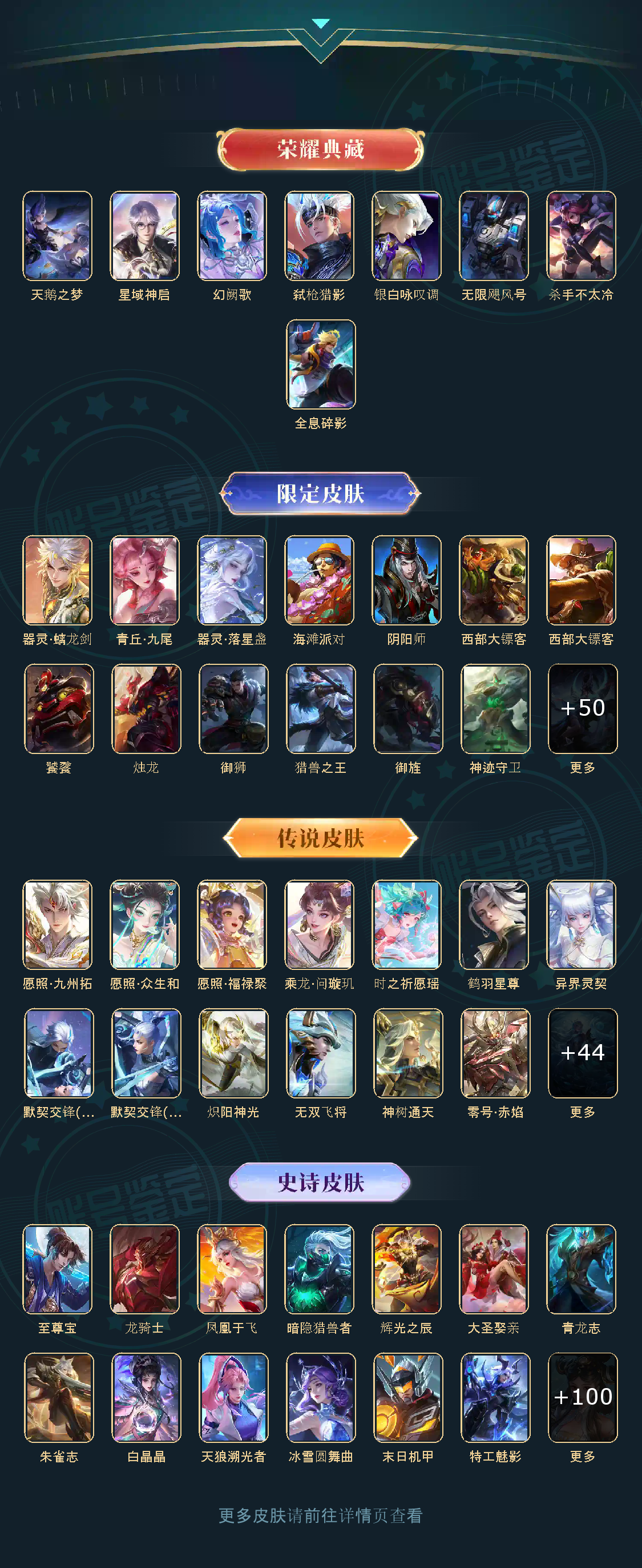 贵族等级V10,英雄数量125,典藏皮肤数7,皮肤数量382,