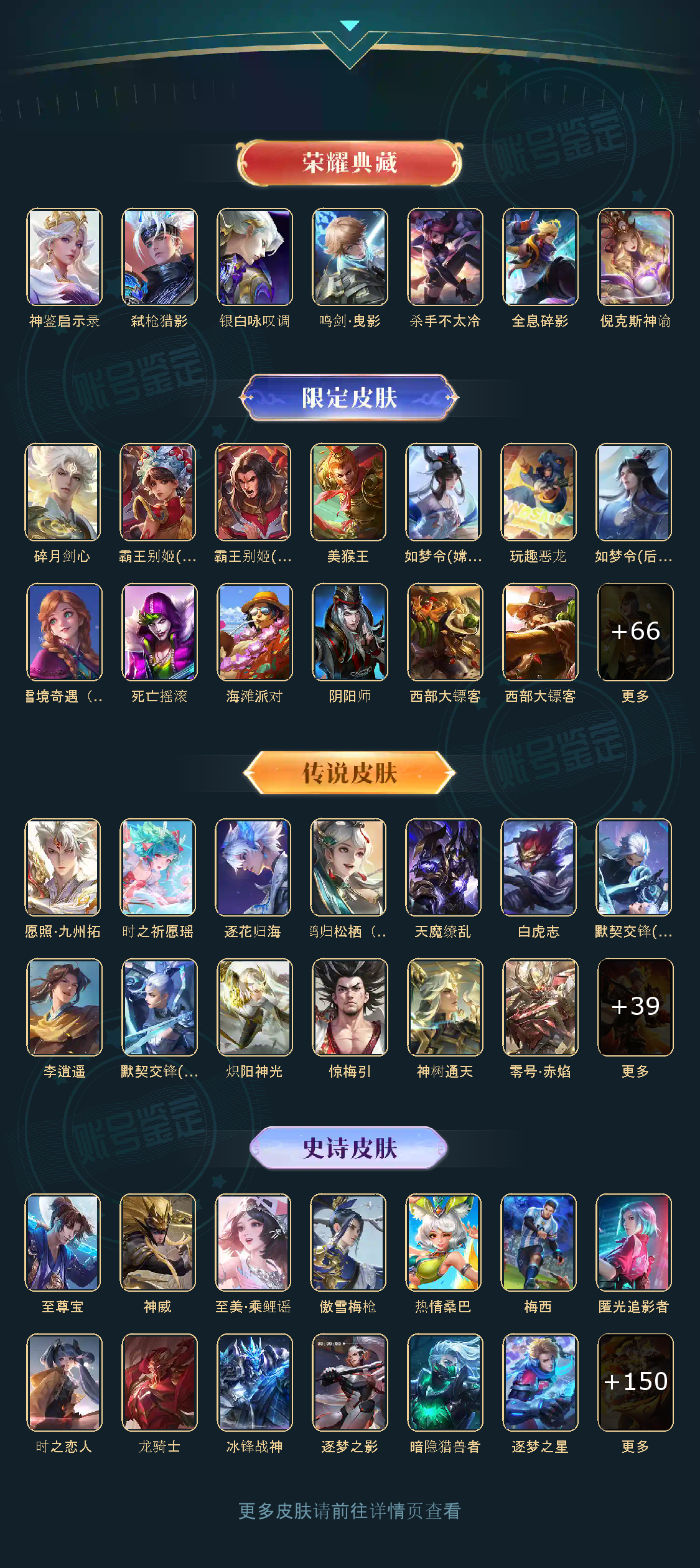 贵族等级V10,英雄数量125,典藏皮肤数6,皮肤数量473,全息碎影/倪克斯神谕/鸣剑·曳影