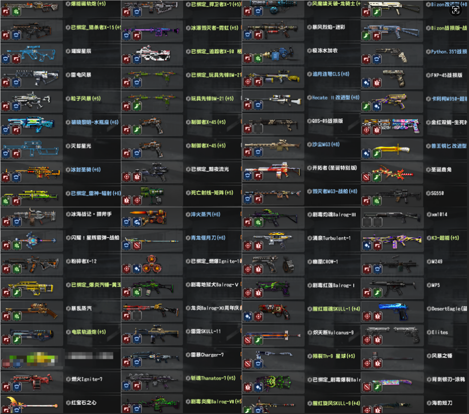 3.更新:天巡1,2,怀旧三件套金红双蝎黑龙炮斧头!龙年年特典加特林黯火,光束全套1,闪电野牛,维京套123,已去黑雾!12到21赛季悬赏(缺14),配件武器全满,强化武器全满!