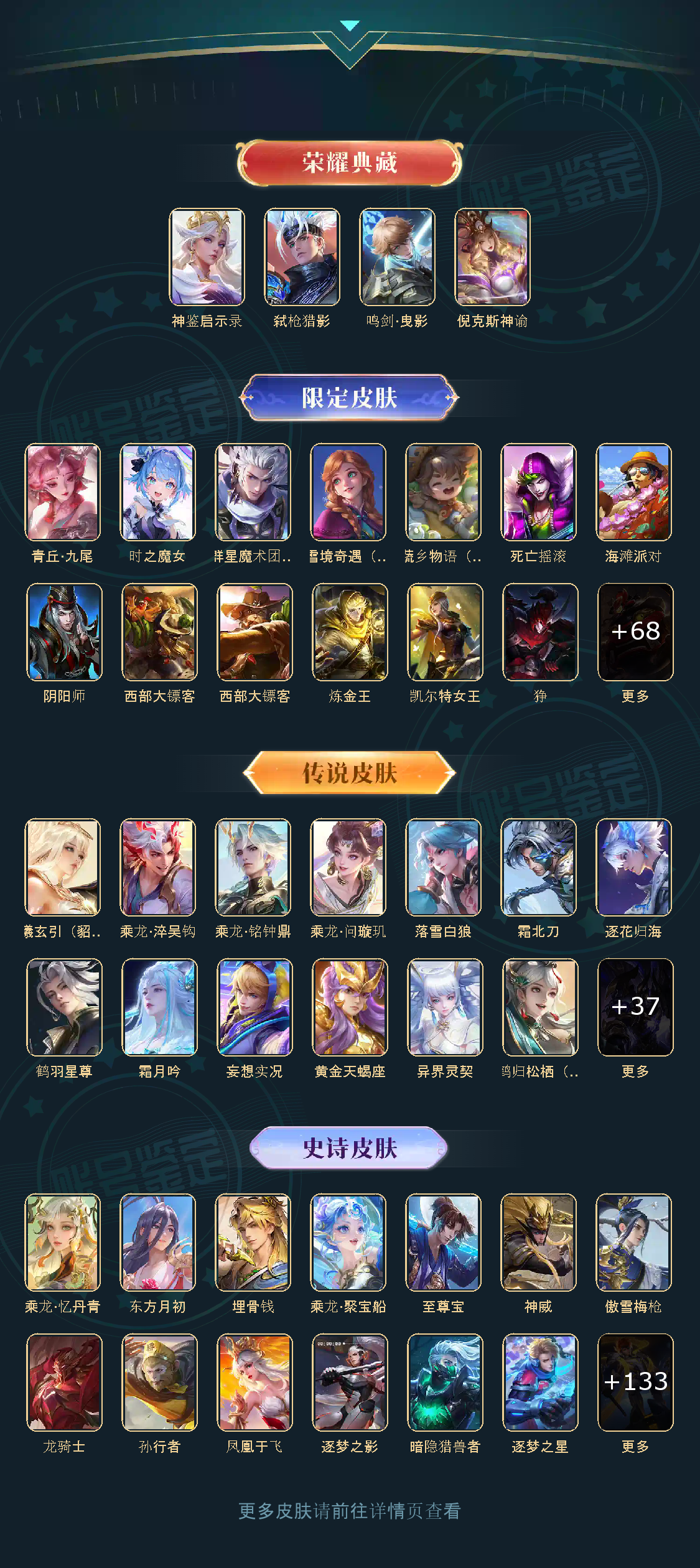 贵族等级V10,英雄数量125,典藏皮肤数4,皮肤数量446,