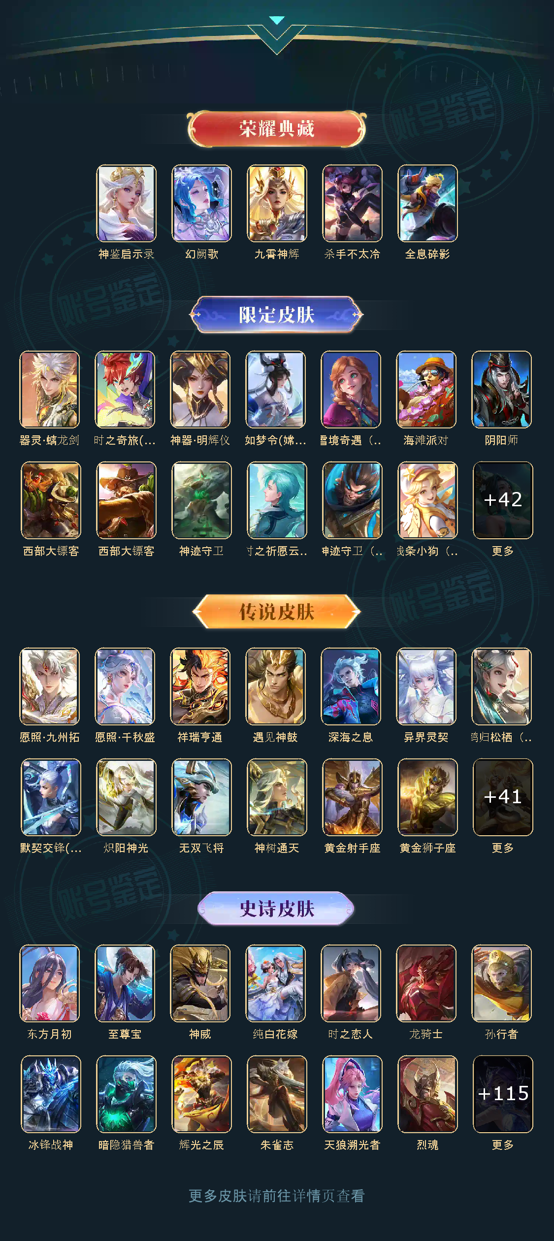 贵族等级V10,英雄数量124,典藏皮肤数5,皮肤数量403,