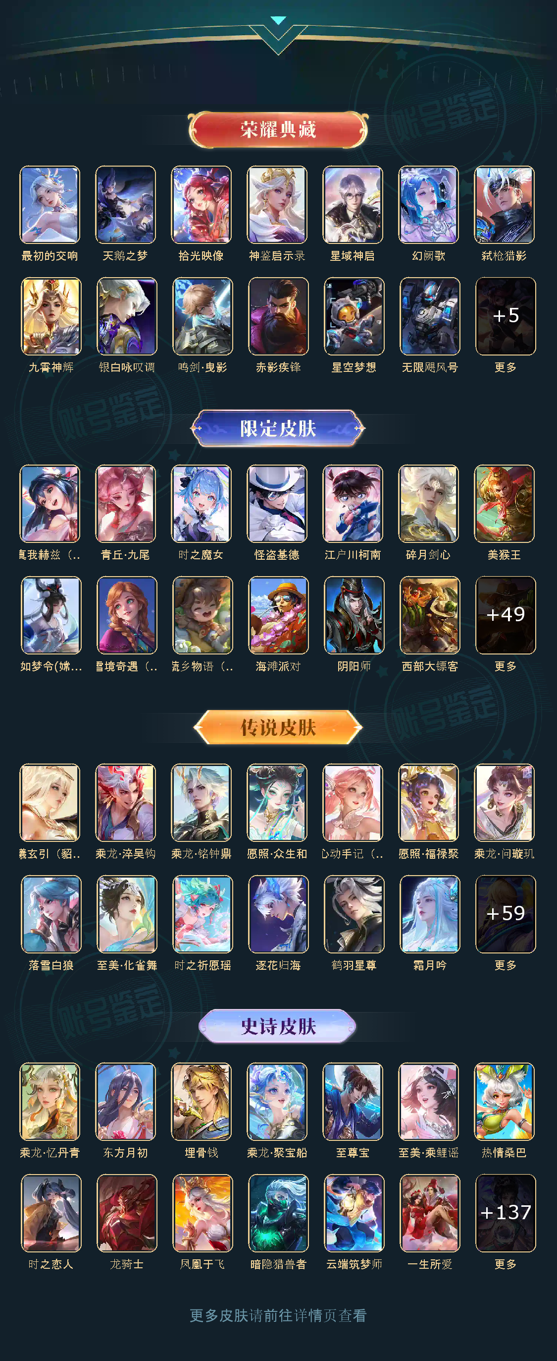 贵族等级V10,英雄数量124,典藏皮肤数18,皮肤数量478,