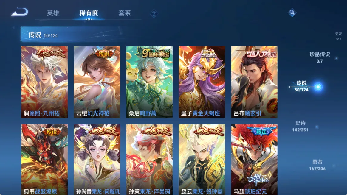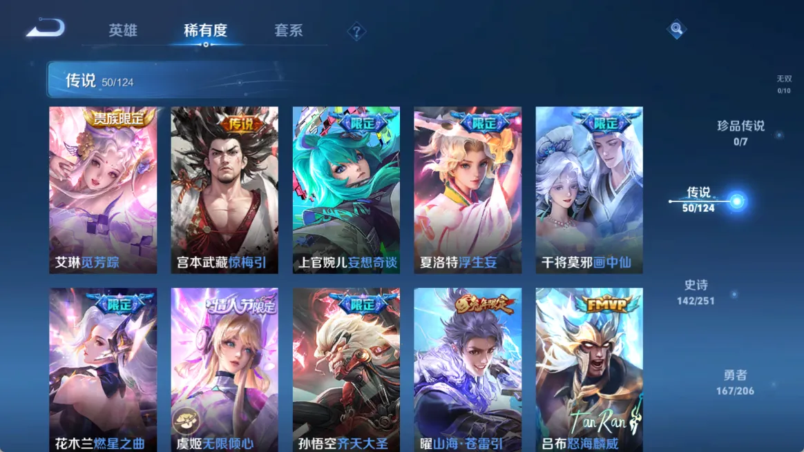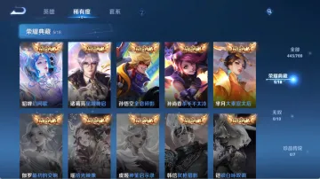 贵族等级V10,英雄数量123,典藏皮肤数5,皮肤数量443,杀手不太冷/大秦宣太后/全息碎影/星域神启