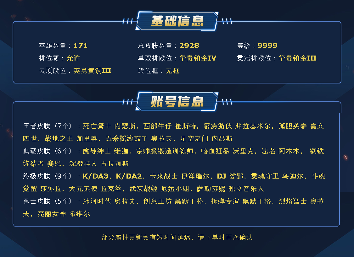 【重要皮肤】北极星钢影卡蜜尔至臻 魔女阿卡丽至臻 玉剑传说琴仙子至臻 斗魂觉醒萨科至臻 斗魂觉醒派克至臻 DRX亚托克斯至臻 墨之影武者亚索至臻 花仙使者卡特琳娜至臻 绝息圣堂厄运小姐至臻 青花瓷丽桑卓至臻 北极星使者沃里克至臻 太空律动魔音海妖娜美至臻 至高天奎桑提至臻 灵魂莲华易至臻 海珀利安小队X09星环灵风迦娜至臻 星之守护者辛德拉至臻 星之守护者艾克至臻 海之歌萨勒芬妮至臻 西部魔影猎天使恶魔泰隆至臻 月蚀骑士赛娜至臻 幻灵战斗猫金克丝至臻 青花瓷拉克丝至臻 神凰行者烈羽焰凰霞至臻 魅惑女巫莫甘娜至臻 女帝黛安娜至臻 战斗学院蕾欧娜至臻 太空律动璐璐至臻 魔女婕拉至臻 魔女乐芙兰至臻 奥术师佐伊至臻 未来战士卢锡安至臻 真实伤害亚索至臻 真实伤害赛娜至臻 星之守护者索拉卡至臻 灵魂莲华提莫至臻 灵能特工伊泽瑞尔至臻 福牛守护者菲奥娜至臻 源计划逆流塞拉斯至臻 源计划阴劫至臻 王国机神玄武盖伦至臻 暗星墨菲特至臻 神龙尊者炎龙瑟提至臻 黑夜使者凯隐至臻 神龙尊者均衡之龙沃利贝尔至臻 征服者贾克斯至臻 飞升战神潘森至臻 焰执事布兰德至臻 KDA二代卡莎至臻 KDA一代卡莎至臻 KDA卡莎2022至臻 KDA阿狸至臻 KDA阿狸2022至臻 KDA伊芙琳至臻 KDA伊芙琳2022至臻 KDA阿卡丽至臻 KDA阿卡丽2022至臻 战斗学院拉克丝至臻 战斗学院拉克丝2022至臻 烈焰美人薇恩至臻 烈焰美人薇恩2022至臻 电玩女神凯特琳至臻 电玩女神凯特琳2022至臻 魅惑女巫厄运小姐至臻 魅惑女巫厄运小姐2022至臻 星之守护者妮蔻至臻 星之守护者妮蔻2022至臻 源计划正义艾瑞莉娅至臻 源计划正义艾瑞莉娅2022至臻 真实伤害奇亚娜至臻 真实伤害奇亚娜2022至臻 绒毛菲兹至臻 绒毛菲兹2022至臻 玉剑传说武剑仙至臻 玉剑传说武剑仙2022至臻 腥红之月亚托克斯至臻 腥红之月亚托克斯2022至臻 未来战士锤石至臻 未来战士锤石2022至臻 黑夜使者李青至臻 黑夜使者李青2022至臻 灰烬守护者慎 灰烬骑士莫德凯撒 灰烬骑士派克 灰烬征服者潘森 灰烬杀手塞拉斯 海克斯科技安妮 海克斯科技瑟庄妮 海克斯科技雷克顿 海克斯科技克格莫 海克斯科技斯维因 海克斯科技吉格斯 海克斯科技玛尔扎哈 海克斯科技波比 海克斯科技嘉文四世 海克斯科技阿利斯塔 海克斯科技阿木木 海克斯科技拉莫斯 海克斯科技魔腾 海克斯科技崔丝塔娜 新卧虎藏龙贾克斯 水晶圣骑艾希 水晶圣骑塔莉垭 星之守护者塔莉垭 永恒之森奥恩 暗星科加斯 光明哨兵奥拉夫 黎明使者卡尔玛 恐惧新星德莱厄斯 零之枪骑赫卡里姆 摄魂使者薇恩 新创战纪希维尔 青年瑞兹 胜利剑圣易 胜利女神娑娜 胜利女神希维尔 银白审判凯尔 舞会公主安妮 战熊骑士瑟庄妮 创星之灵璐璐 生化领主泰达米尔 黑夜使者弗拉基米尔 养蜂人辛吉德 电玩女神厄运小姐 电玩勇者锐雯 电玩女神阿狸 星之守护者伊泽瑞尔 玉剑传说无影 玉剑传说舞剑仙 神凰行者幽羽玄凰萨勒芬妮 神凰行者烈羽焰凰霞 海珀利安小队Z01猎户座卢锡安 海珀利安小队Y03权天使卡蜜尔 玉剑传说神机花火 玉剑传说无劫 玉剑传说舞龙卫 玉剑传说星仙子 玉剑传说翼剑仙 星之守护者佐伊 灵能特工易 黎明使者薇恩 天龙之子斯莫德 虎头虎脑崔丝塔娜 烈焰仙子黛安娜 龙腾虎跃瑟提 猛虎下山赵信 招财进宝提莫 替父从军花木兰 神龙烈焰金克丝 碧玉之牙卡西奥佩娅 古琴余韵娑娜 春晖神女拉克丝 你看见过我的熊猫吗安妮 北辰之威内瑟斯 南天之怒沃里克 美猴王孙悟空 定海神珍孙悟空 玉净夜叉凯特琳 紫金罗刹莫甘娜 广寒仙子嫦娥 虎痴之拳蔚 张辽文远 烈焰美人薇恩 醒狮克格莫 神龙之翼库奇 征服者贾克斯 王国机神青龙德莱文 王国机神朱雀蕾欧娜 王国机神苍狼瑟提 王国机神白虎贾克斯 王国机神玄武盖伦 福牛守护者安妮 福牛守护者厄斐琉斯 福牛守护者菲奥娜 胜利女神瑟庄妮 胜利机器人布里茨 胜利女神奥莉安娜 胜利枪神格雷福斯 胜利枪神卢锡安 胜利之剑亚托克斯 怦然心动凯特琳 意乱情迷蔚 水晶玫瑰阿克尚 水晶玫瑰迦娜 幽梦玫瑰伊莉丝 碎心之拳蔚 甜心之羽霞 甜心之翎洛 甜心宝贝安妮 甜心宝贝娑娜 觅心游侠卢锡安 觅心魔灵奥莉安娜 觅心女王艾希 觅心之翼奎因 觅心萝莉金克丝 觅心猫猫悠米 觅心猎手薇恩 幽梦玫瑰辛德拉 幽梦玫瑰泰隆 水晶玫瑰斯维因 北极星神黛安娜 北极星守望者佐伊 北极星使者沃里克 冬境仙灵索拉卡 寒冬精灵璐璐 冬季仙境奥莉安娜 雪球也能爆炸吉格斯 圣诞捣蛋鬼金克丝 圣诞老人布隆 圣诞老人德莱文 冰雪驯鹿波比 冰雪风暴希维尔 冬季仙境卡尔玛 持胡萝卜的雪人易 狂心冰王图奇 冰雪女神辛德拉 魄罗骑士瑟庄妮 夺命美人卡特琳娜 平安夜女神娑娜 圣诞糖果棒厄运小姐 魅惑女巫艾尼维亚 魅惑女巫乐芙兰 魅惑女巫赛娜 魅惑女巫迦娜 魅惑女巫厄运小姐 魅惑女巫莫甘娜 魅惑女巫崔丝塔娜 魅惑女巫伊莉丝 大魔法锅布里茨 大魔王提莫 死亡誓约卡特琳娜 死亡誓约劫 灵魂收割者索拉卡 小恶魔菲兹 海之歌艾希 海之歌萨勒芬妮 海之歌永恩 泳池派对凯特琳 泳池派对佐伊 泳池派对普朗克 泳池派对辛德拉 泳池派对奥莉安娜 泳池派对嘉文四世 泳池派对黑默丁格 泳池派对塔莉垭 泳池派对厄运小姐 泳池派对塔里克 泳池派对菲奥娜 泳池派对格雷福斯 泳池派对李青 泳池派对