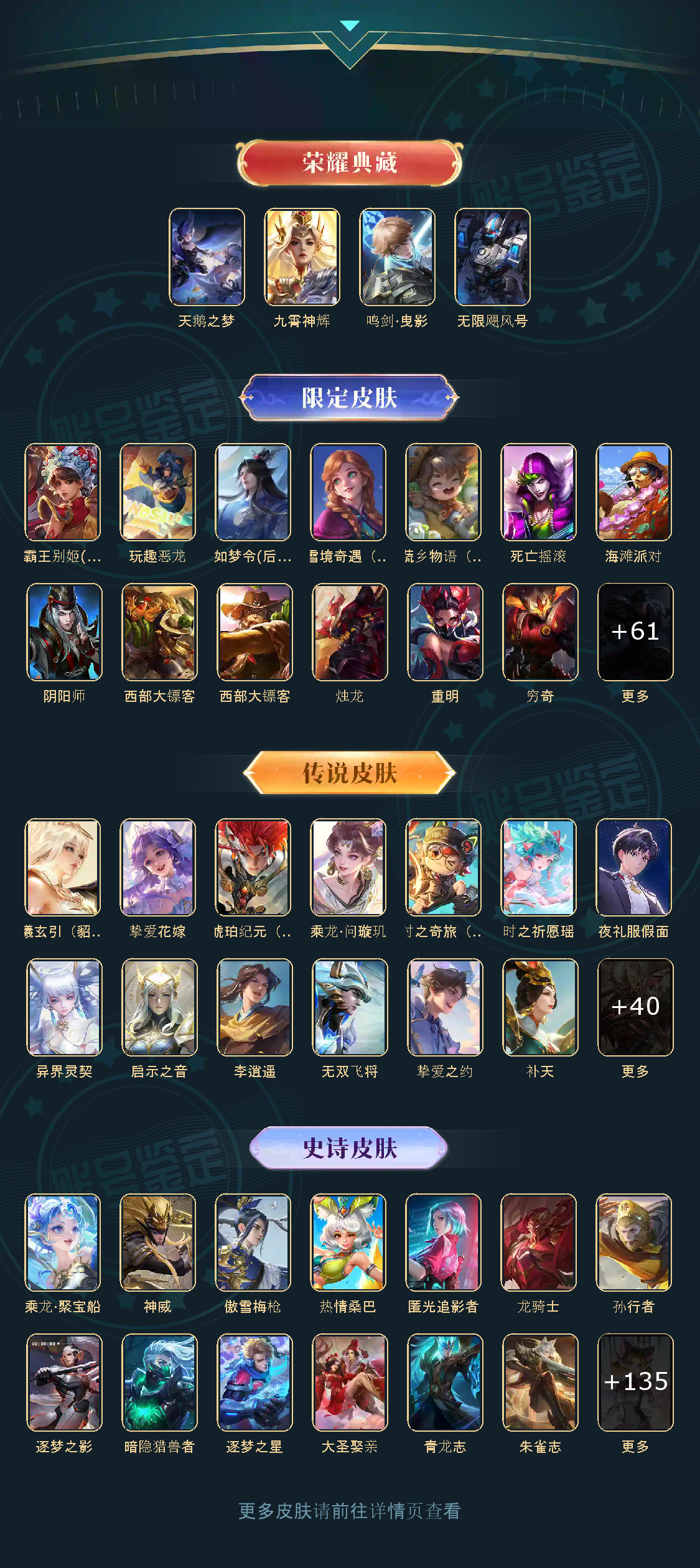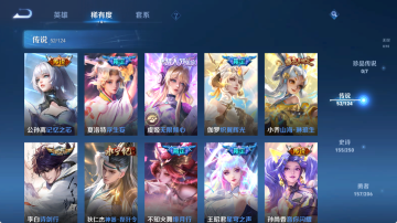 贵族等级V10,英雄数量124,典藏皮肤数3,皮肤数量447,天鹅之梦/无限飓风号/鸣剑·曳影