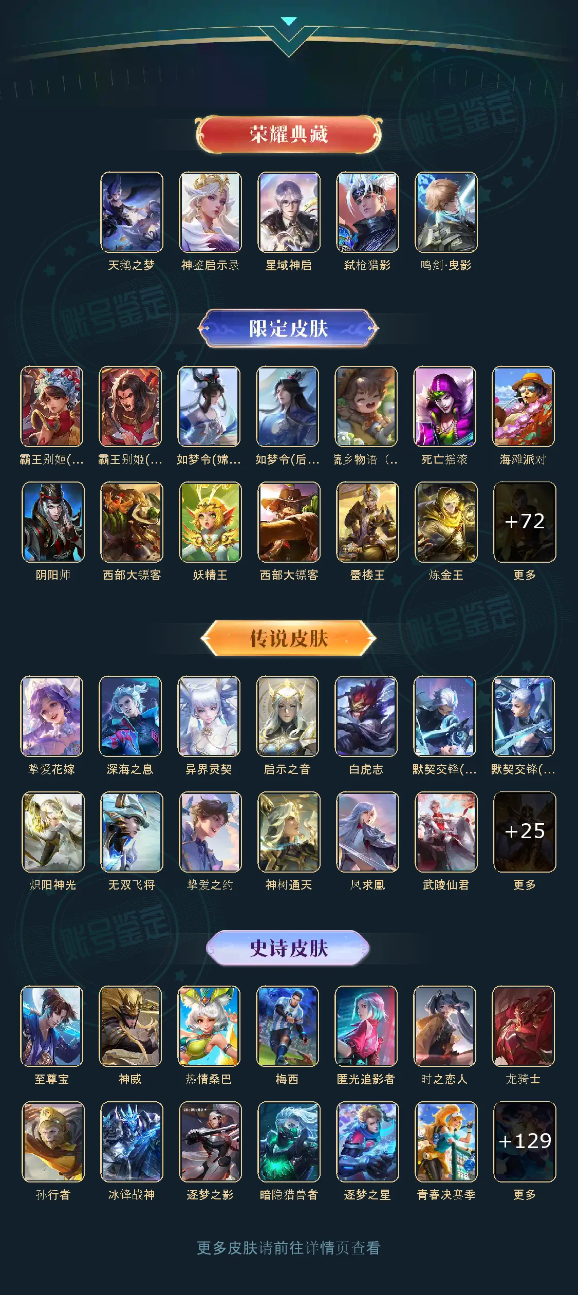 天鹅之梦,鸣剑·曳影,神鉴启示录,星域神启,弑枪猎影,白虎志,默契交锋(兰陵王),默契交锋(花木兰),炽阳神光,热情桑巴,梅西,至尊宝,神威,匿光追影者,无双飞将,挚爱之约,挚爱花嫁,深海之息,异界灵契,启示之音,神树通天
