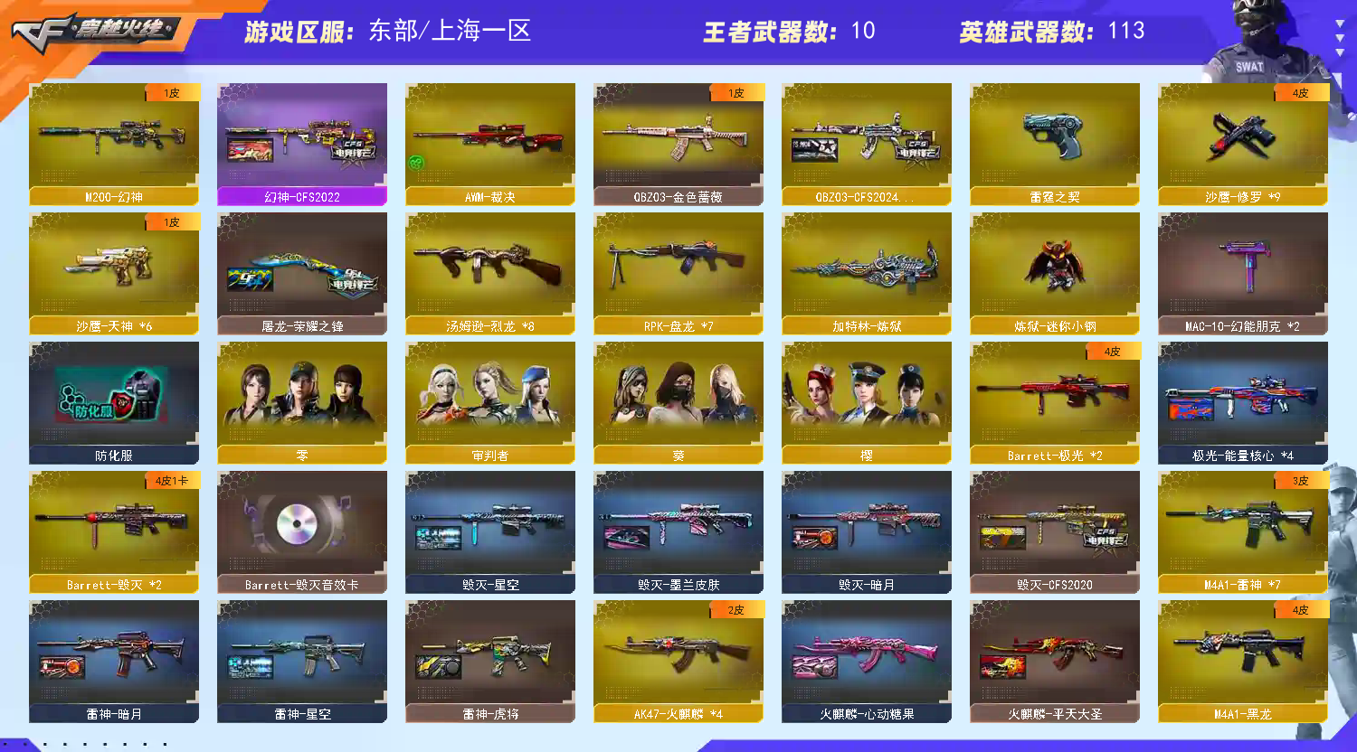 118V6王者可排位/【雷神-CFS十周年纪念版皮肤】【M200幻神+幻神CFS2022/6黑骑士/HK417-朱雀/QBZ03-金色蔷薇/7盘龙/8烈龙/炼狱-迷你小钢/死亡之眼/9修罗/6天神/7雷神/COP357-雷霆】【/黑骑士音效卡/毁灭音效卡/】【QBZ03-CFS2024皮肤/炼狱-电子连击皮肤/雷神-星空/无影耀金皮肤/火麒麟-心动糖果/麒麟刺-萌杀皮肤/毁灭-墨兰皮肤/毁灭-星空/火麒麟-雷神/火麒麟CFS2018/毁灭-CFS2020/AWM-天龙-传奇白鲨/雷神-虎将/屠龙-荣耀之锋/火麒麟-AG战队皮肤/火麒麟-CF STAR/天龙-CF STAR/修罗-CF STAR】【葵/零/审判者/樱/0号玩家/妩媚妖姬】【王者之影/王者之戮/王者之武/王者之击/3套雷霆雷/巨龙咆哮/神圣爆裂者-末日】【烟雾保护头盔/战舰头盔/闪光护目镜/运动护目镜/战舰护目镜/超级对讲机/超级背包3-7/虎牙炫彩背包/炫彩背包/全背包+扩展背包/长时效步枪弹匣/永久防弹衣防弹头盔手雷包C4工具钳
