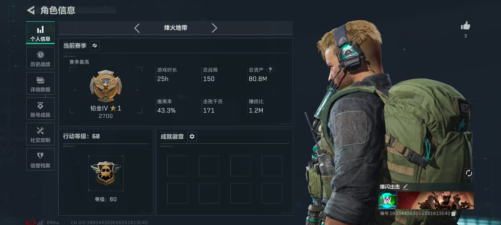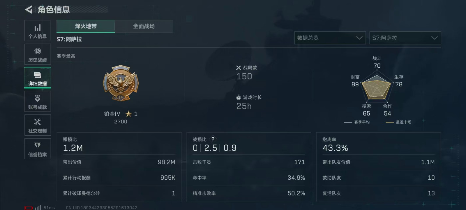 - 烽火地带段位: 铂金
