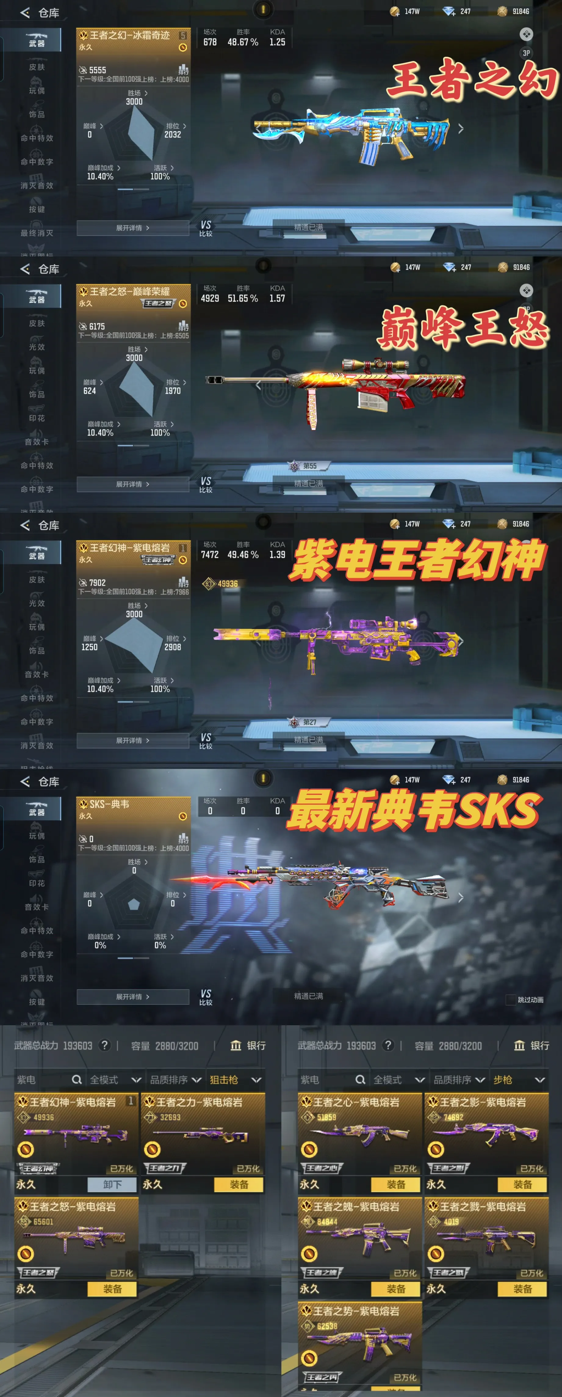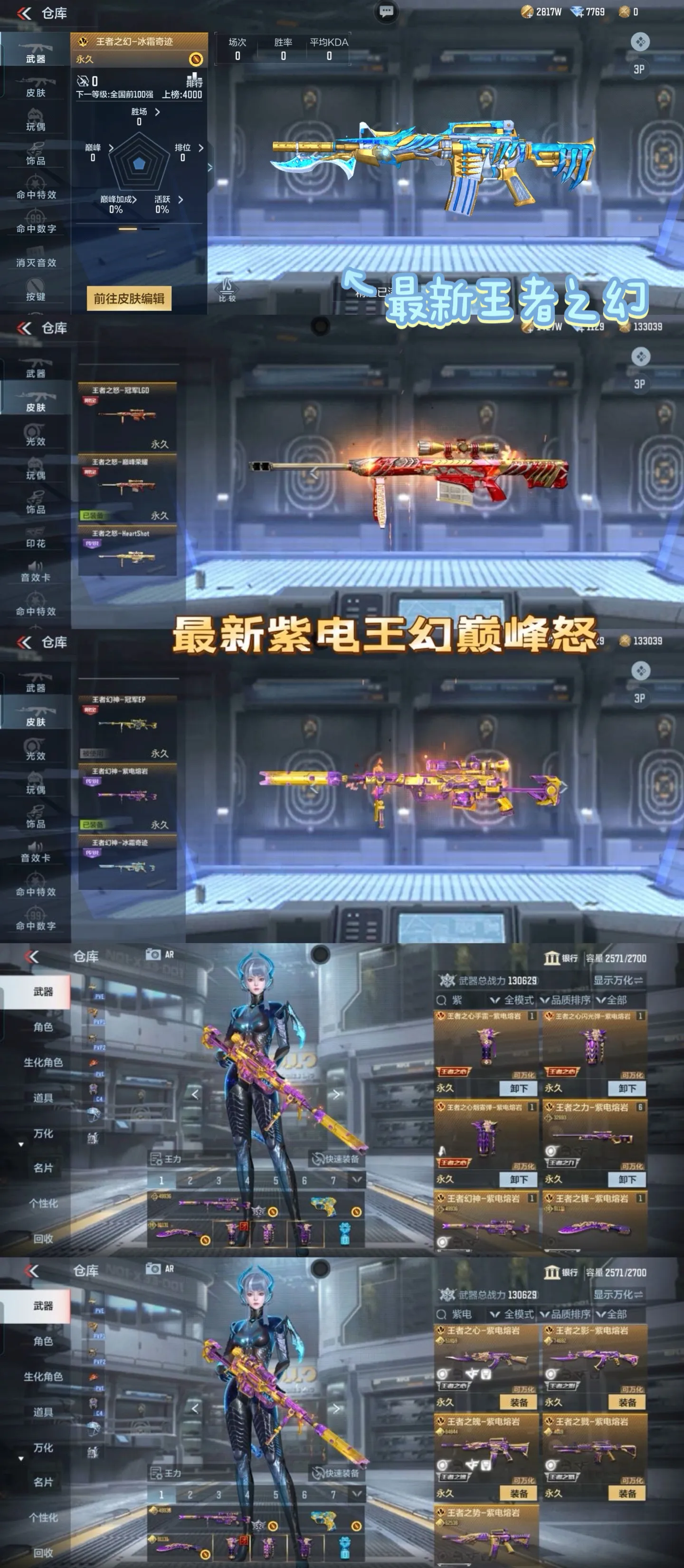 ❤️🔥狙击枪:紫电熔岩王怒至尊✨紫电熔岩王力✨冰霜王者幻神至尊✨雷霆王者狙✨女团王光至尊✨秒才过载✨幻神战舞✨极光✨星神✨王掣✨太史慈 紫电王力