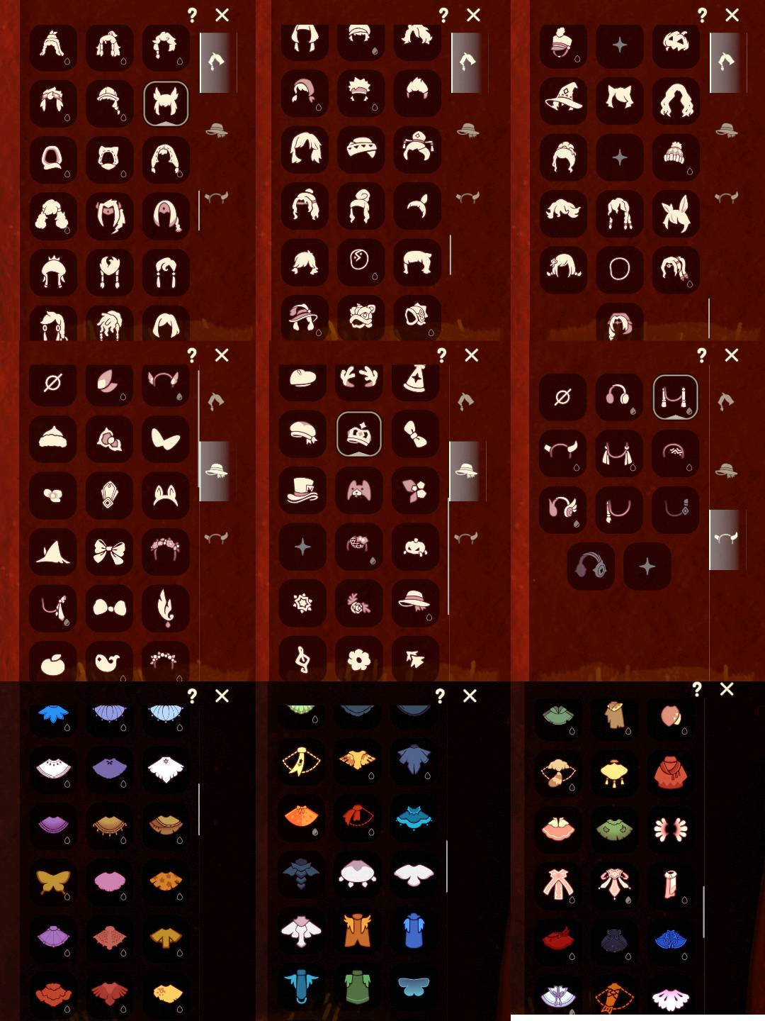 【毕业季】梦想季,表演季,集结季,破晓季,欧若拉,追忆季,姆明季,彩染季,青鸟季 【稀有礼包】瑞气服饰,牛仔裤,兔子拖鞋,圣诞雪人,跃动跑鞋,奔离远行发,海蓝波浪发型,巫师帽,雪花发夹,小狗周年头饰,四叶草头饰,TGC斗篷黑,创始人斗篷,小王子围巾,鲤跃龙门,蝙蝠斗,透明蜘蛛斗,暖冬夹棉斗篷,绊爱礼包,音韵吉他,瑞气纸伞,情人秋千,姆明饰品套装,姆妈手作斗篷礼包,仙境茶会门扉礼包,爱丽丝围裙套装礼包,献瑞折扇礼包,衔福献瑞礼包,宝藏猎人礼包,大橘大利,南瓜头,年年有鱼礼包 【毕业物品】双边耳坠,凤凰面具,凤凰斗篷,燕尾斗篷,丛林黑面具,六边锅帽子,胜利号角,连帽斗篷,双翼遥鲲斗,冥龙斗篷,留辫蘑菇头,高领舞服,透明蝶翼斗,肩带,追忆之书,姆明抱枕,姆明大伞,妮妮长裙,彩染围巾斗篷,辉光羚羊面具,青鸟斗篷,青鸟面饰 【热门复刻】绿芽,海洋斗,击剑裤,武士裤,虚荣,正太头,猫猫头,背带裤,搓澡巾,花环长发,红耳机,箬笠,平顶帽,高音钢琴,白金斗篷,黄鼠狼面具