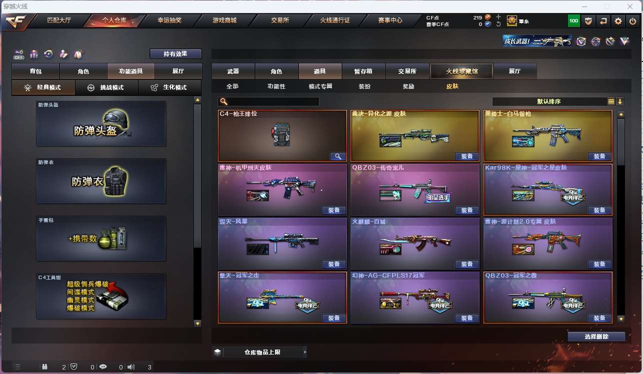 【m200幻神+音效卡+巅峰荣耀+ag17冠军+周瑜+冠军之特+冠军之刃】【98k星神+音效卡+冠军之星】【m200竞技荣光套+usp雷暴+四防云悠悠】【王者星神】【6盘龙 炼狱 6烈龙 炽芒蝶刃 斯太尔蝴蝶】【传说光耀(6224)】【传说辉光 传说圣灵】【scar白虎+卡】【qbz金色蔷薇+卡+呛娘皮肤+冠军之薇+宠儿皮肤】【qbz天罚】【玄武】【hk417朱雀】【火麒麟+卡+横秒之巅+冠军之心】【雷神+卡+冠军之魄+荣耀之魄+宠儿皮肤】【黑骑士+卡+冠军之势】【毁灭+卡+bean+sv16冠军+冠军之怒+荣耀之怒】【裁决+异化之源】 【武器:青龙 荣耀世冠雷神 海王 王者之影 白虎电玩蓝兔 天龙 】 【12手呛:修罗*4 cop雷霆 雷暴 电竞装甲 竞技荣光 冠军之特 】 【18刀具:屠龙*2 龙啸*5 擎天 斩神刀雷暴 夜魔 幻灵之峰 云龙扇 王者之刺 】 【6雷套:雷暴雷 堕天神雷 夜魔雷 幻灵雷 竞技荣光雷 云龙雷】 【小人呛:天龙曼陀罗 炼狱小刚 斯太尔蝴蝶】 【音效卡:星神音效卡 黑骑士音效卡 白虎音效卡 火麒麟音效卡 毁灭音效卡 金色蔷薇音效卡 幻神音效卡 雷神音效卡 】 【四防角色:云悠悠 荒漠琉璃 鹰 王者葵貂蝉 王者瞳闭月羞花 王者沙漠玫瑰 职业经理】