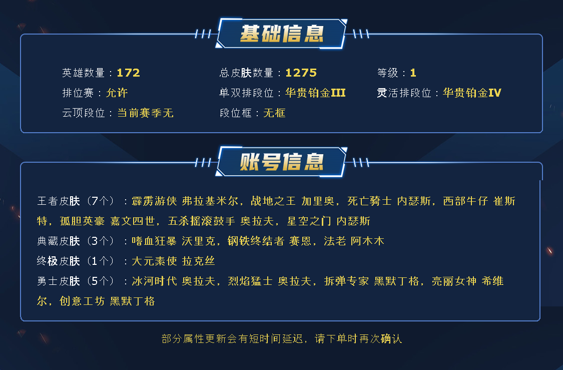 ~~喜欢记得收藏~~可排位~~1264皮全英雄丨886原皮378炫彩~~租之前尽量查一下游戏ID,确保段位是您需要的,避免浪费您的时间~~请勿挂机逃跑故意送人头,谢谢合作,谢谢~~