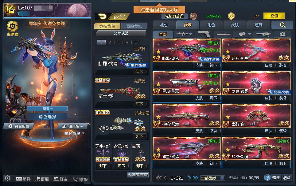 传说星珀终焉丨神谕终焉丨墨韵合丨神谕终焉丨龙息终焉丨碎星终焉丨无尽光影终焉丨SCAR-影魔丨AK47主宰丨屠魔丨