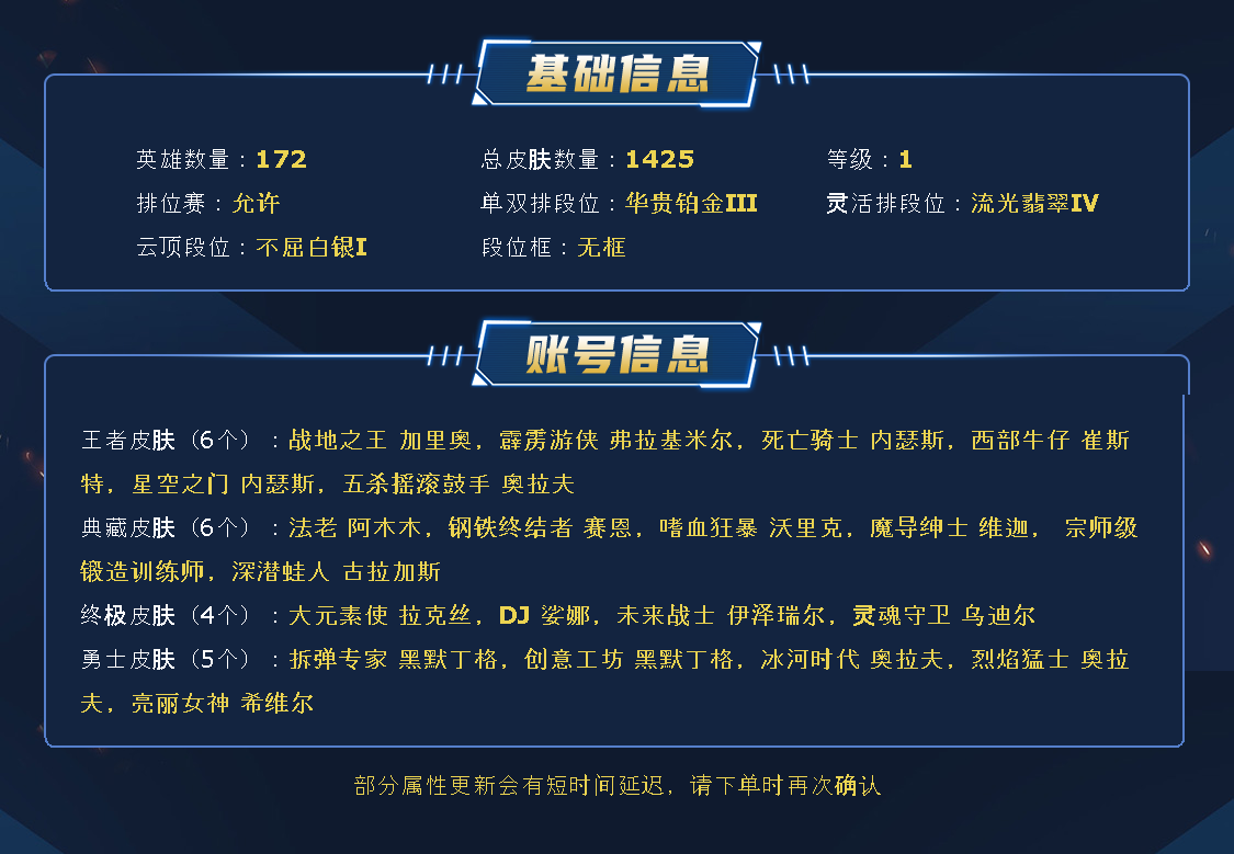 ~~喜欢记得收藏~~可排位~~1400皮全英雄~~租之前尽量查一下游戏ID,确保段位是您需要的,避免浪费您的时间~~请勿挂机逃跑故意送人头,谢谢合作,谢谢~~
