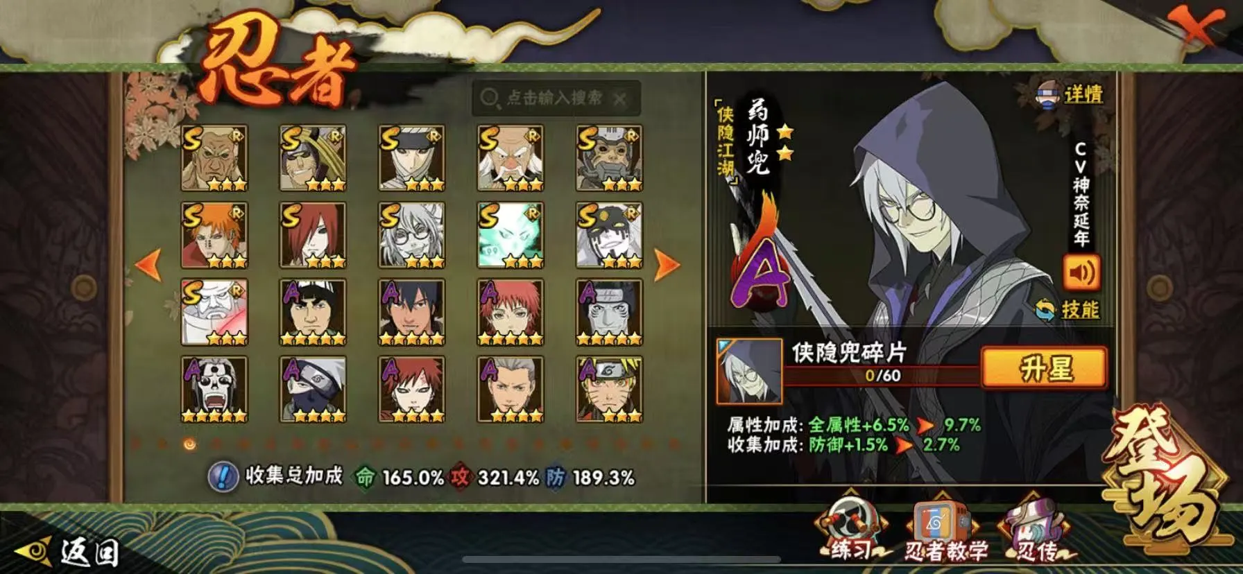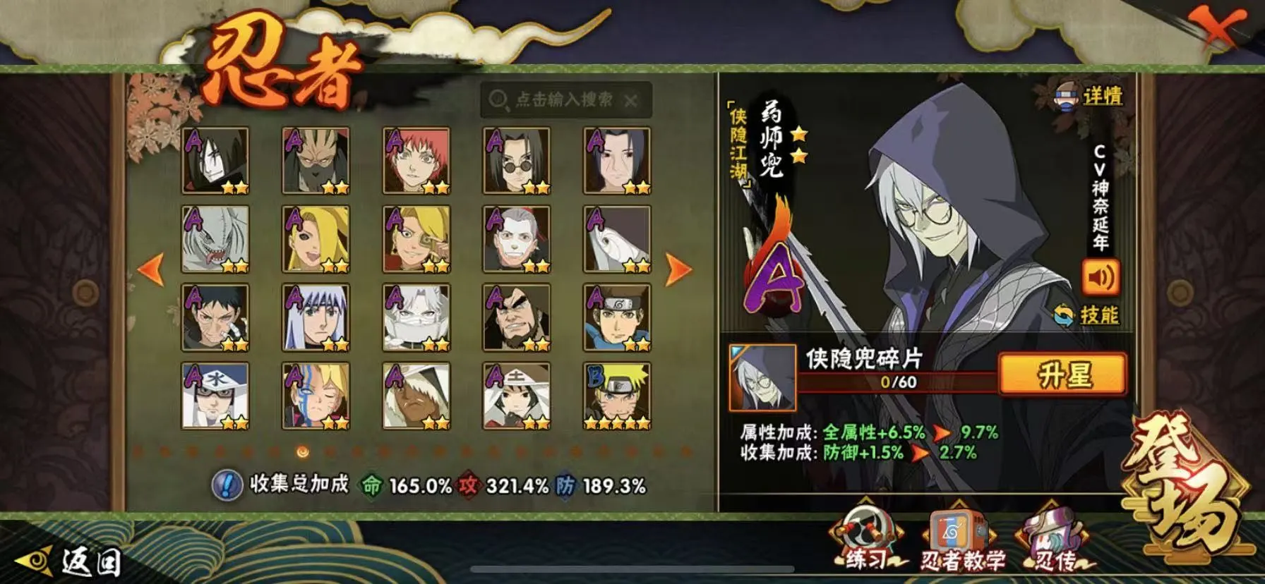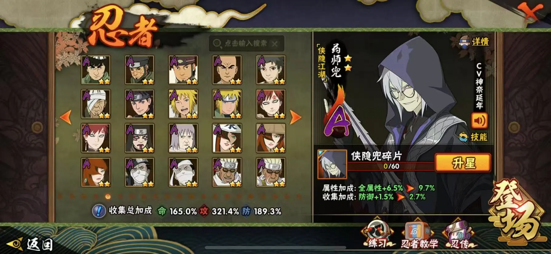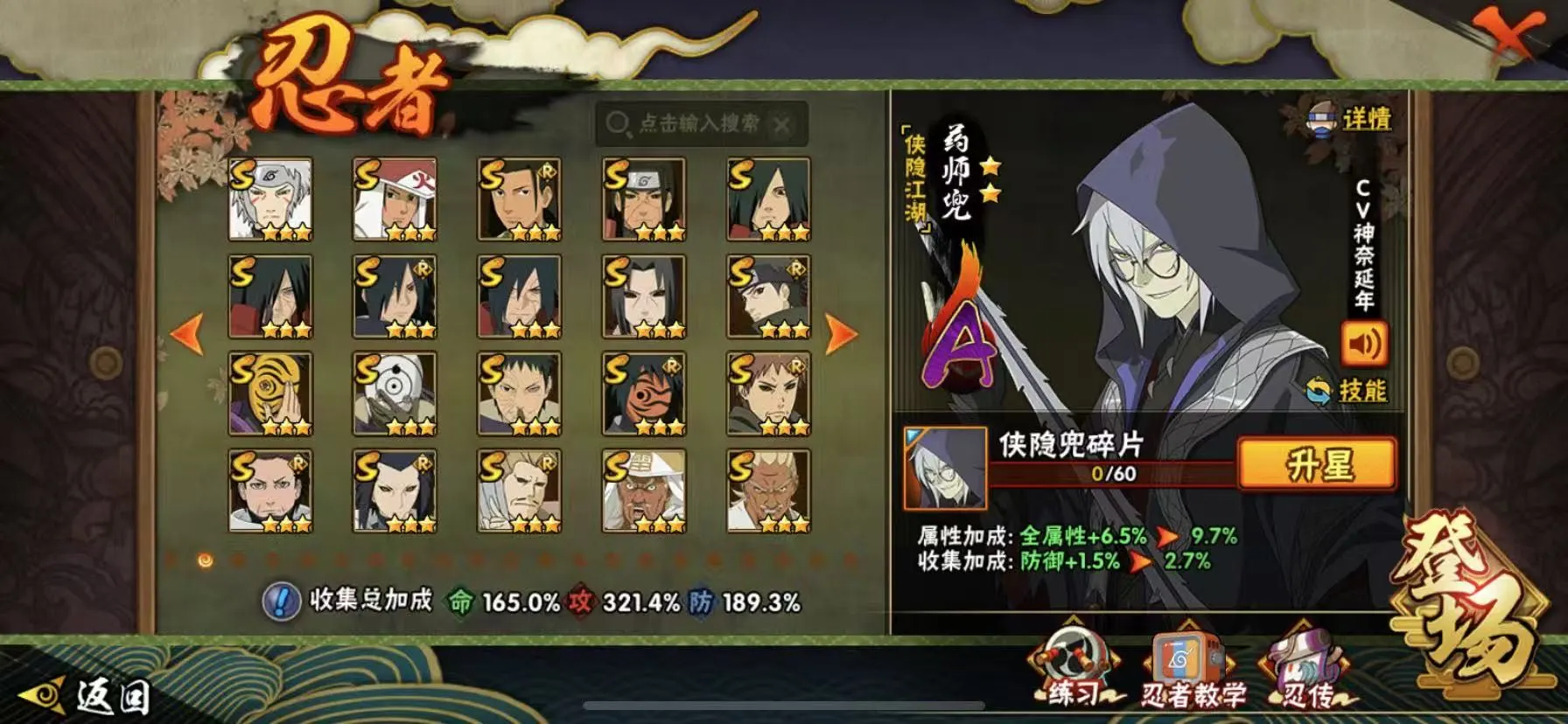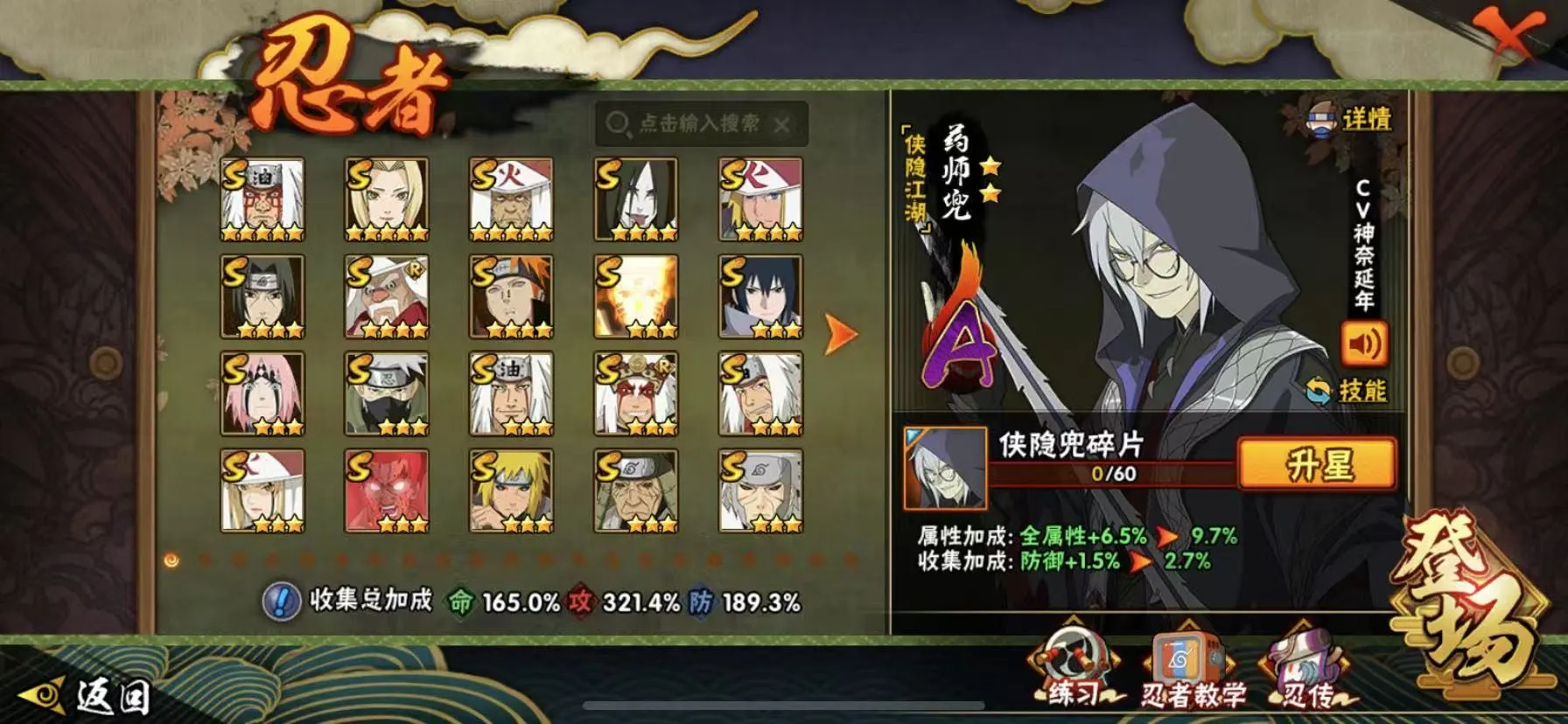50S 400忍者 全忍者 天道超 秽土柱间 神农「羁绊」已秒 漩涡鸣人「暴怒•第六尾」宇智波佐助「侠隐江湖」宇智波斑「五影会谈」